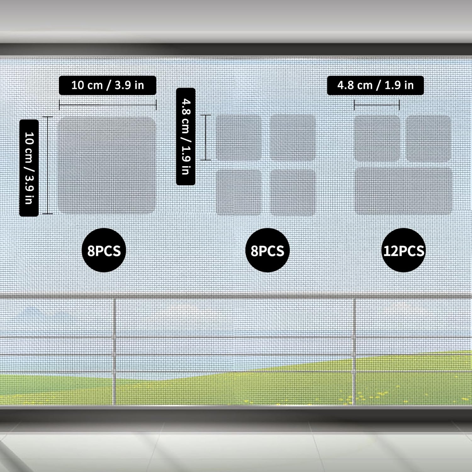 28 Sheets Window Screen Patches Repair Kit, Grey/Black 3 Sizes Window Screen Repair Kit for Mesh Screen Door, Strong Adhesive Fiberglass Quick Screen Repair Tape