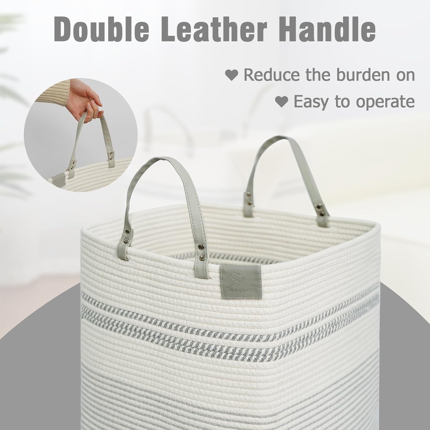 • Durable Leather Handles: Tired of bending down to lift heavy laundry? Our extended leather handles offer a firm, comfortable grip—just grab and go! Designed for durability and ease, they make carrying laundry effortless, whether you're going up the stairs or moving it around your home