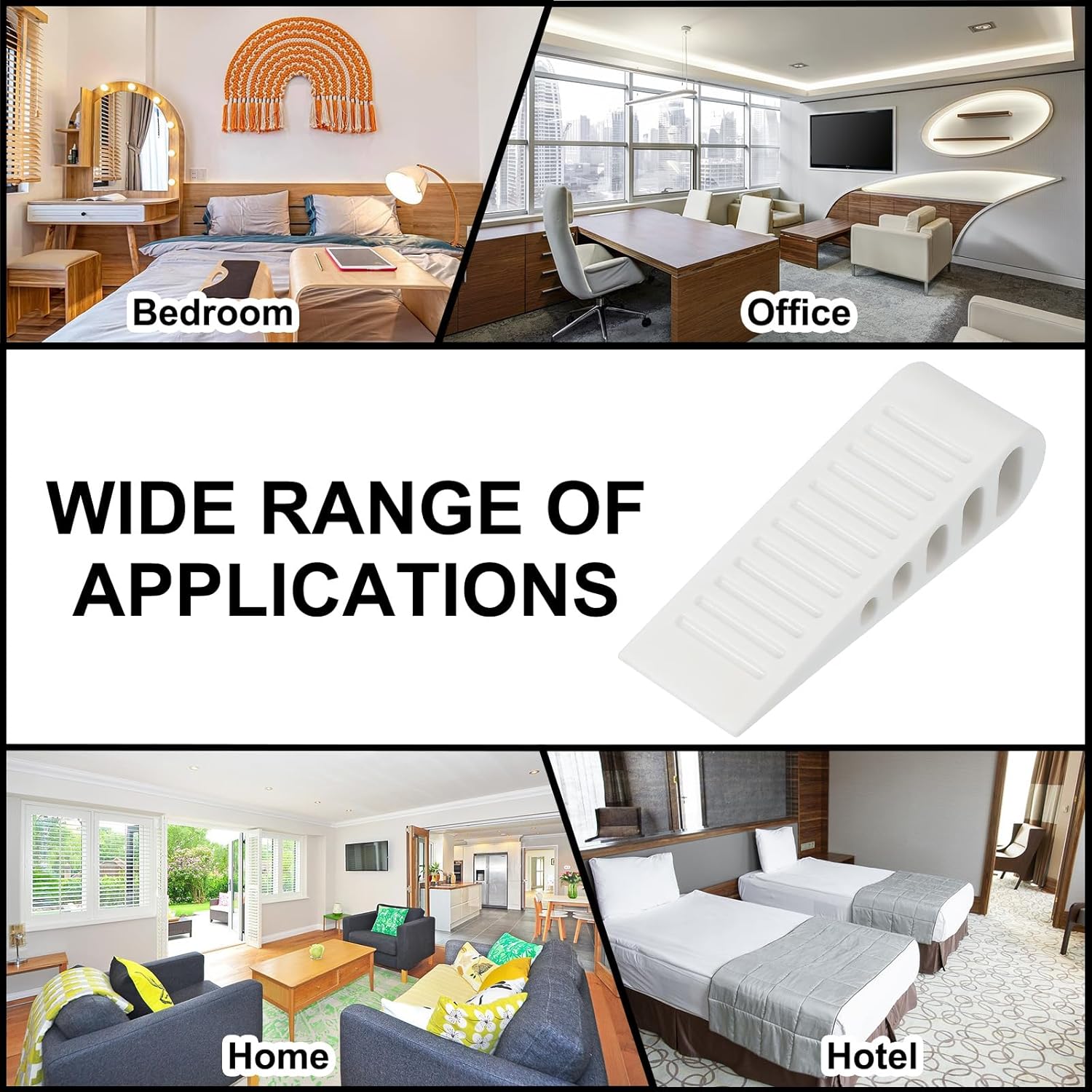 • Sturdy Rubber: The door stop wedges are crafted from TPR material, ensuring reliability, reusability, and non-slip. Suppleness structure with scientific arched holes, effectively preventing doors from closing due to a breeze and helping prevent cats and dogs from accidentally pushing the door closed.