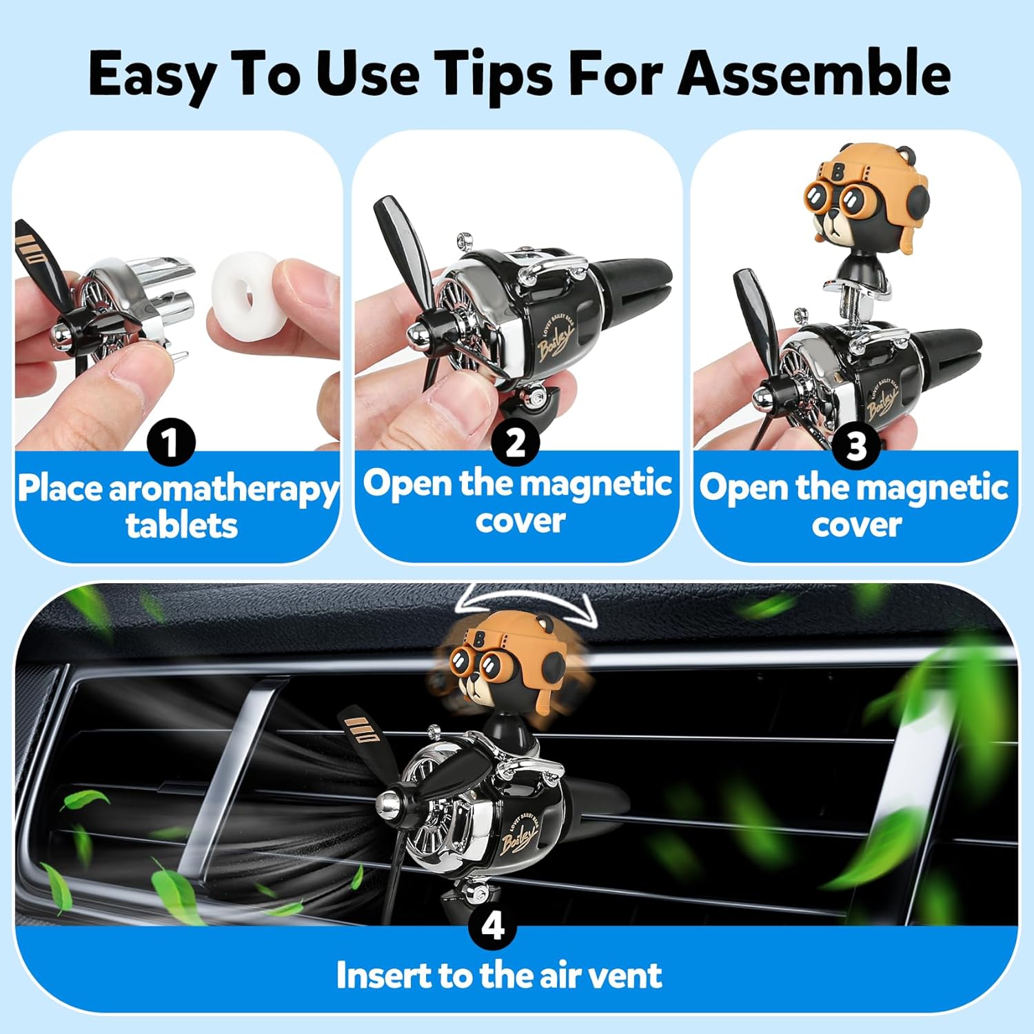 • CRAZY CUTE TEDDY BEAR DESIGN: This car air freshener design in cute cartoon teddy bear pilot. Propeller rotating with the air flow really a fun decoration in the car and other indoor air conditioner. Scent tablet adding freshness with your car's air flow