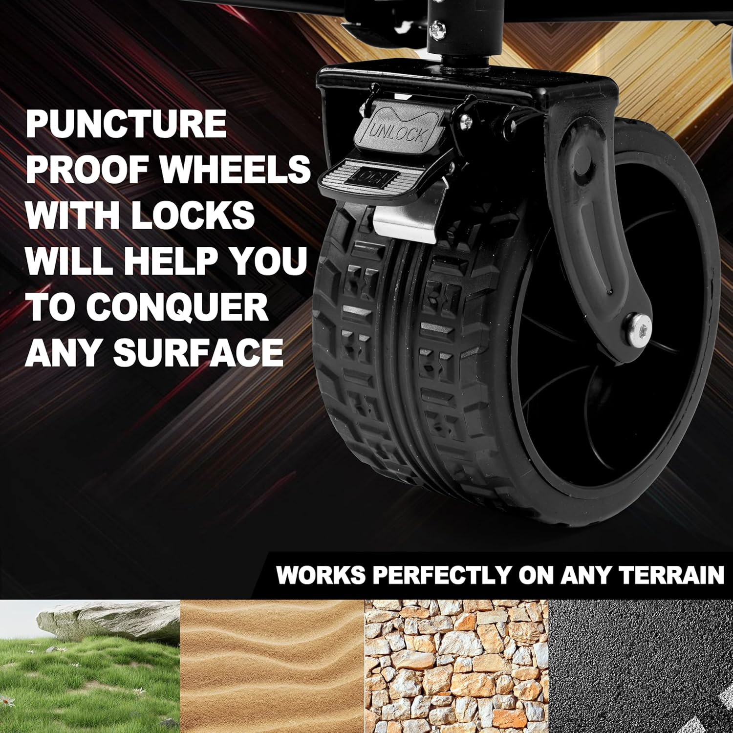 • Navigate through sandy beaches, rocky paths, or your own backyard with the cart's large, foldable beach wheels, designed specially to provide stability and ease over various terrains. Whether it's transporting gardening supplies or carrying picnic essentials, your items will rest secure and undisturbed during transit.