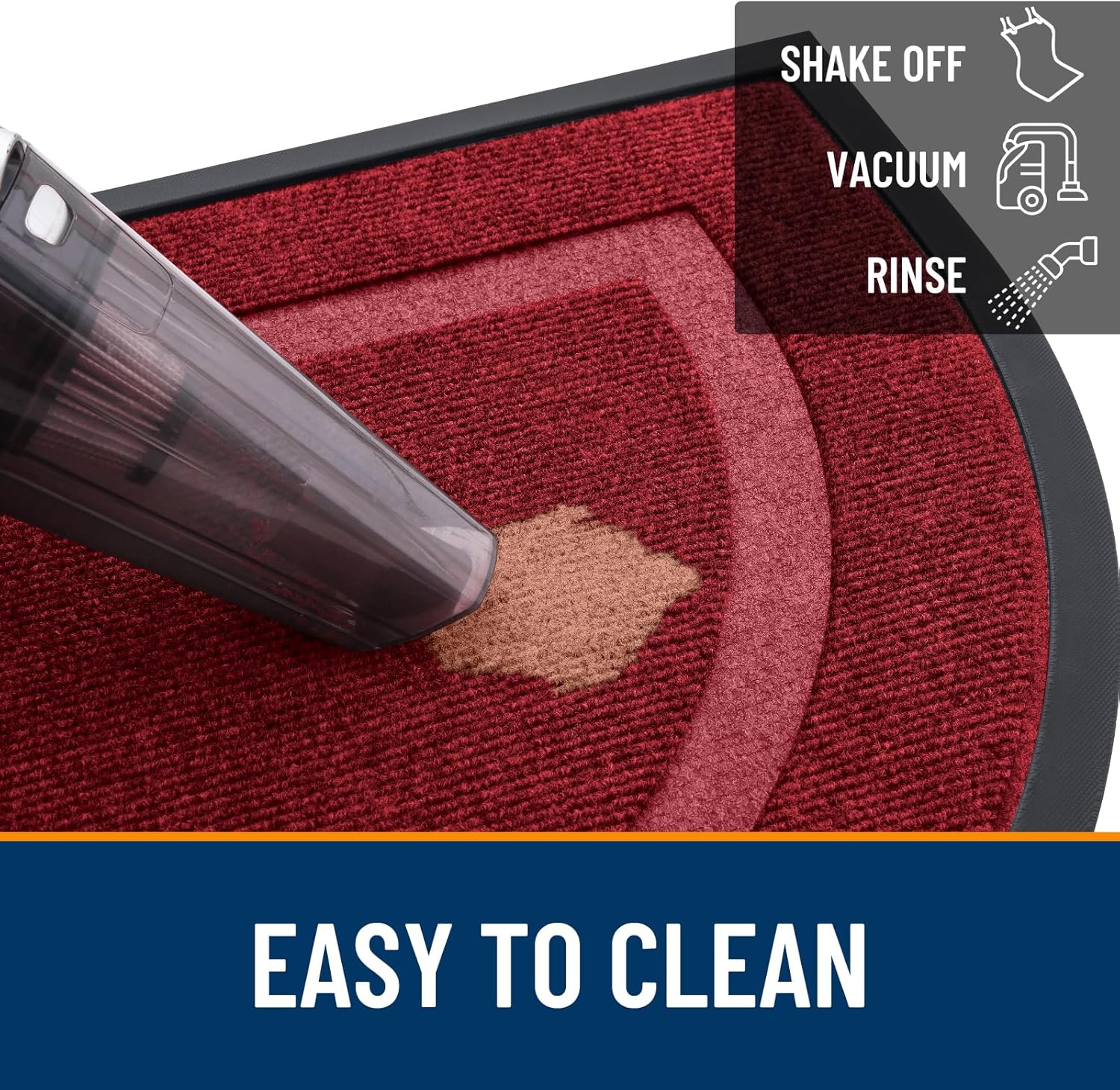 OLANLY Half Circle Door Mat Indoor Outdoor Entrance Welcome, Waterproof All-Season, All-Weather Doormat, Sturdy Natural Rubber, Low Profile, Easy Clean Patio Porch Entryway Mat, 36x24, Wine Red
