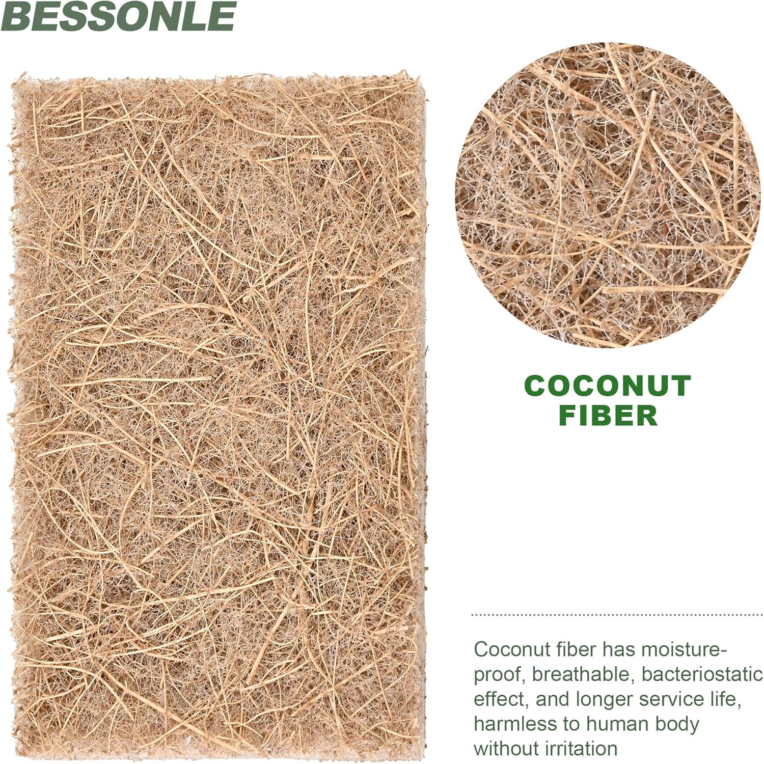 • NATURAL SCOURING PADS - BESSONLE's biodegradable heavy duty scour pad is made with coconut fibers binded together with recycled fibers for a mix of great cleaning performance and care for the environment(The box is also). This green scouring pad makes it easier than ever to go green in the kitchen!