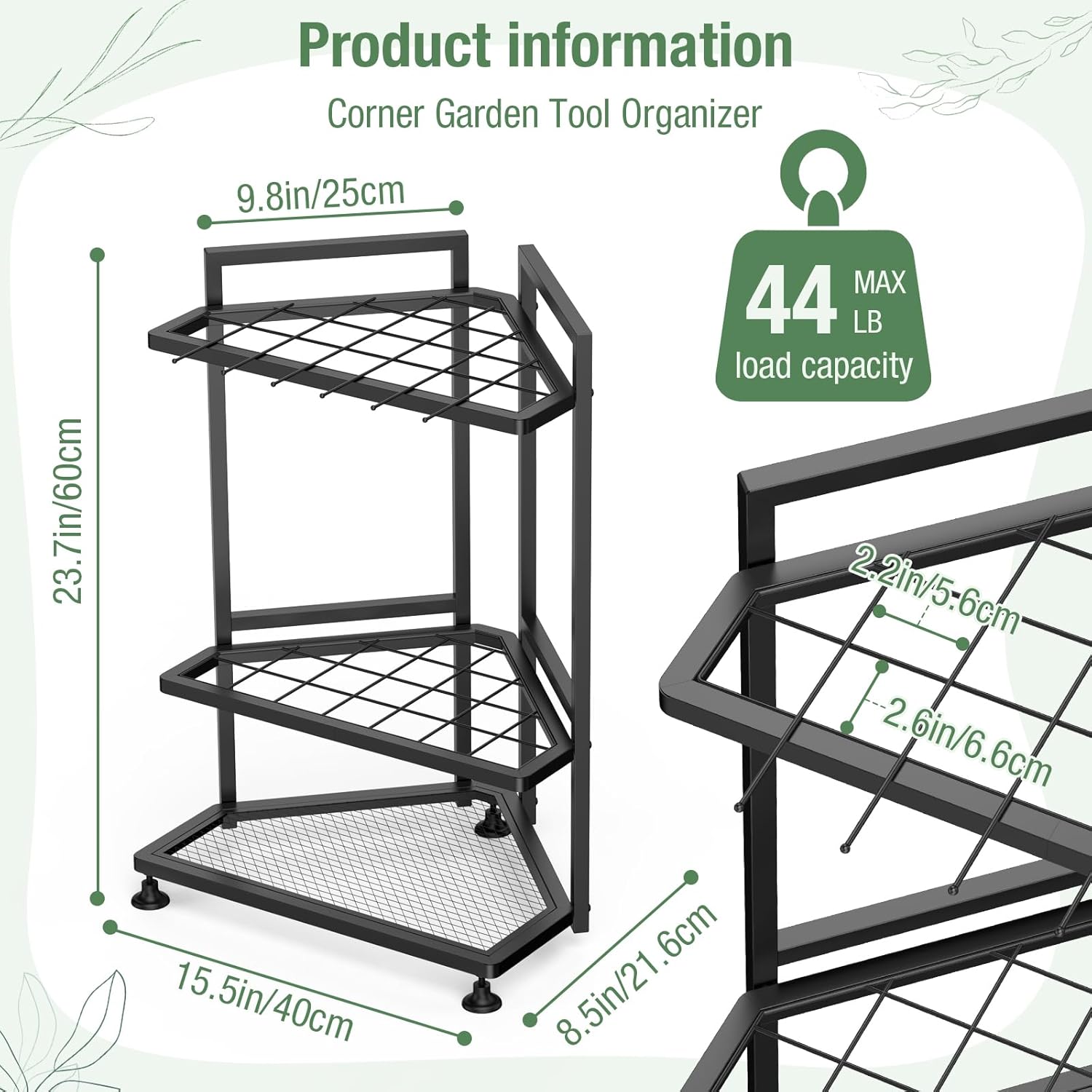 • Corner Friendly Trianglar Tool Rack-Make the most of unused corners with this space-saving garden tool organizer. Its compact triangular design fits snugly into tight spaces, keeping tools neatly stored and within easy reach while freeing up floor space