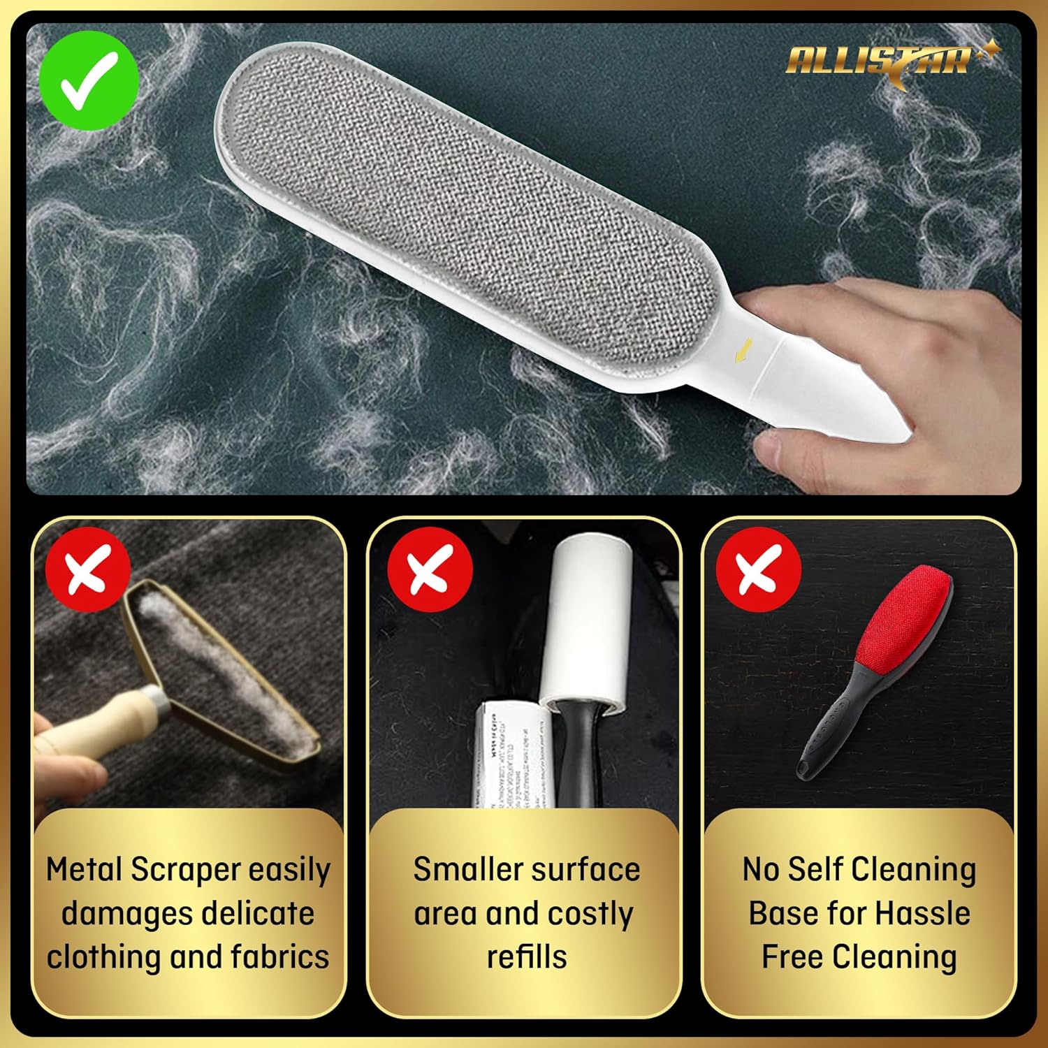 Lint Brush, Pet Hair Remover, Lint Remover for Clothes, Sofa, Carpets, Car Seats. Cat Hair Remover. Dog Hair Remover Laundry. Double-Sided. Reusable. Self-Cleaning Base. ALLISTAR (Snow Peak White)