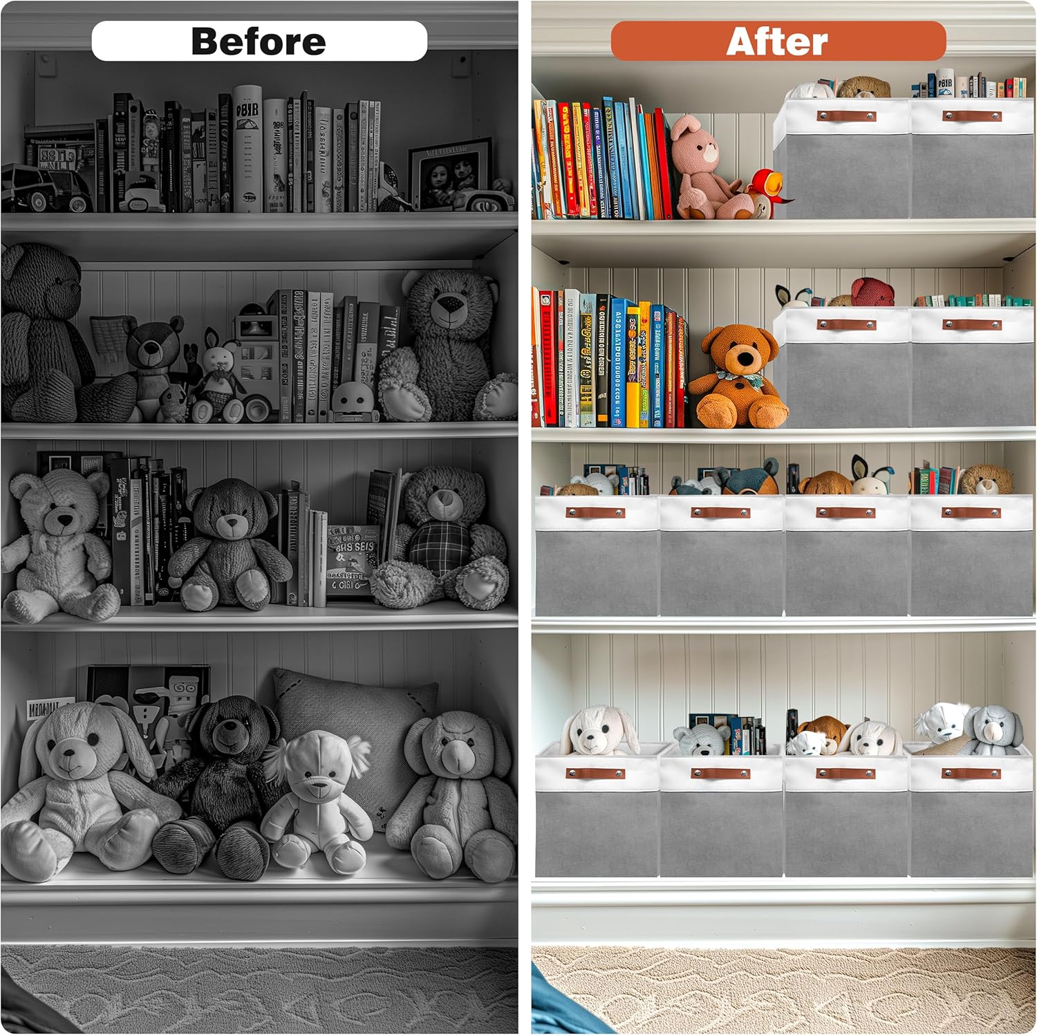• 【MULTIPURPOSE & VERSATILE】 Our fabric storage basket measures 13*13*13 inch , perfect for organizing a wide range of items like socks, underwear, makeup, office supplies, toiletries, and more. Whether in your bedroom, bathroom, kitchen, or office, these baskets help you maximize space and maintain a tidy environment.
