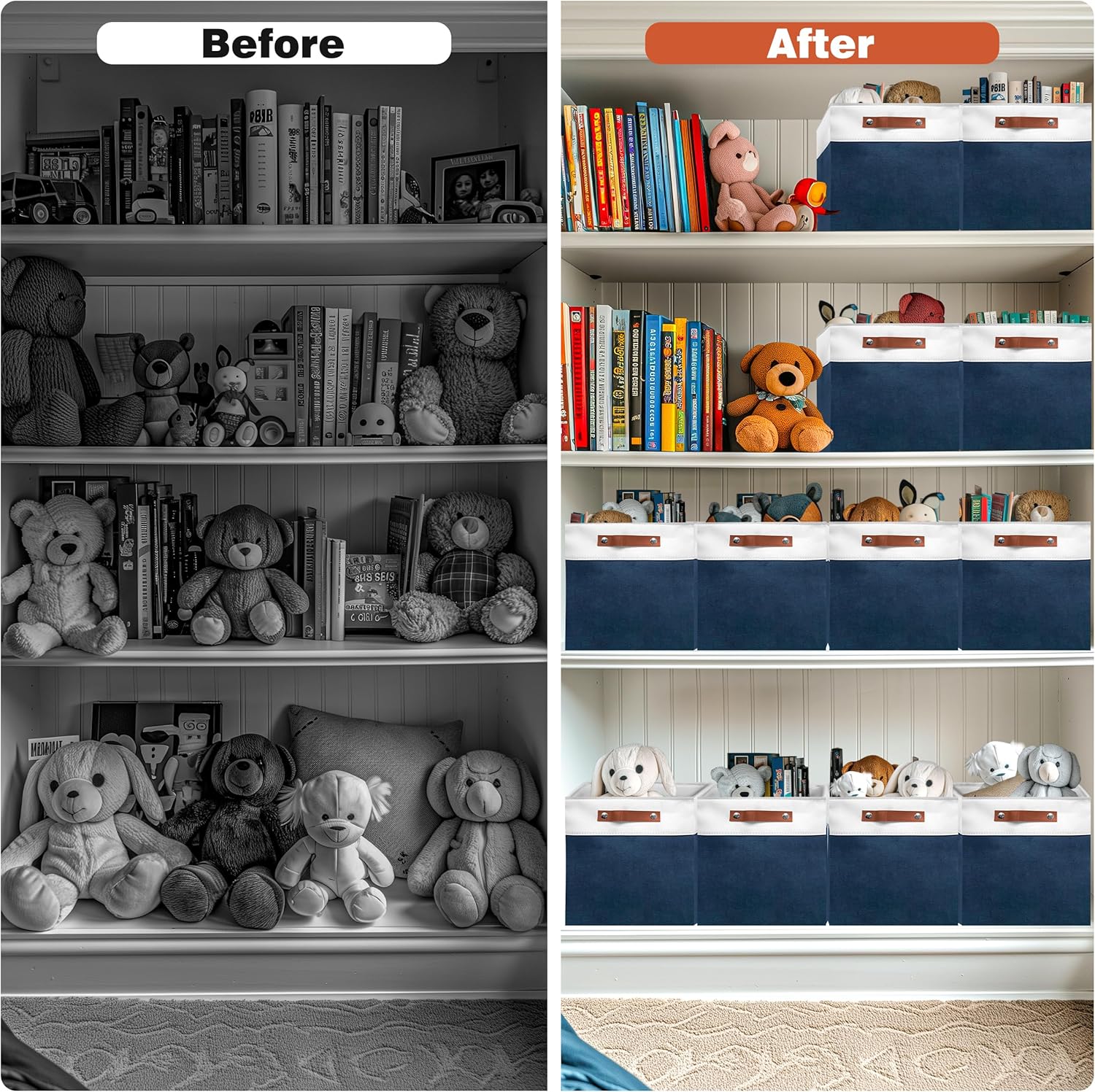 • 【MULTIPURPOSE & VERSATILE】 Our fabric storage basket measures 13*13*13 inch , perfect for organizing a wide range of items like socks, underwear, makeup, office supplies, toiletries, and more. Whether in your bedroom, bathroom, kitchen, or office, these baskets help you maximize space and maintain a tidy environment.
