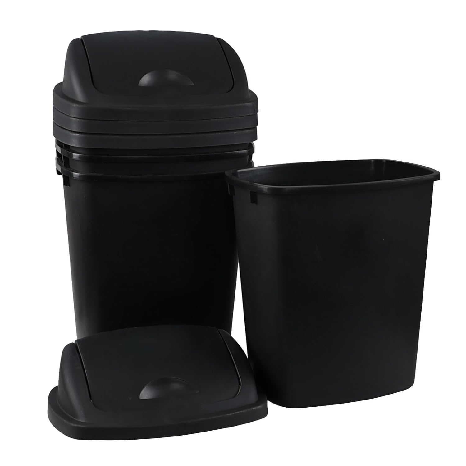 4-Pack 6 Gollons Garbage Bin with Lid, Black Swing Top Trash Can