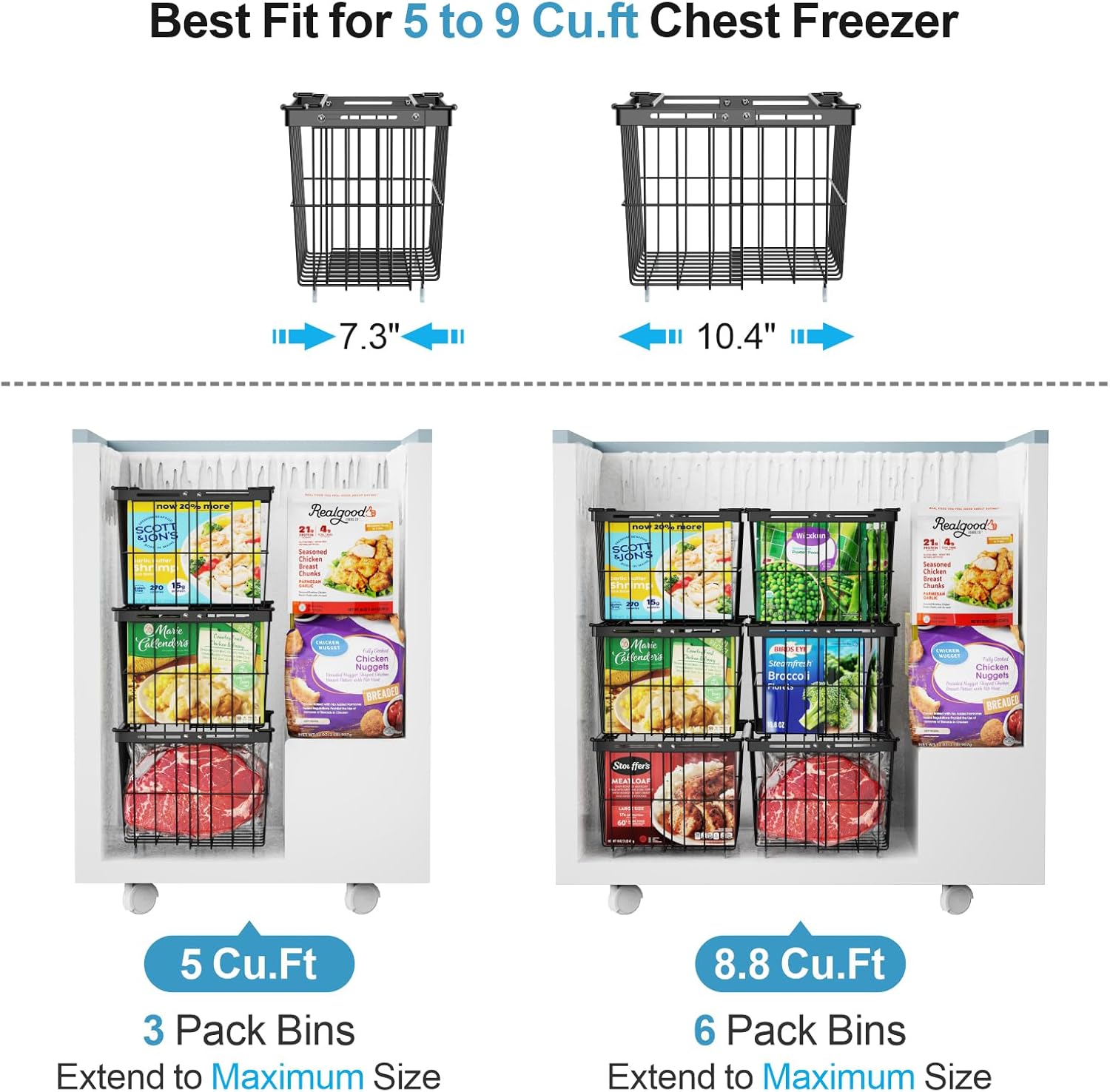 • [Heavy-duty storage without bending]: The bins for chest freezer organization are built with 20% thicker wire than standard freezer baskets for chest freezer organization; Holds bulky frozen foods securely while transparent sides let you spot items instantly