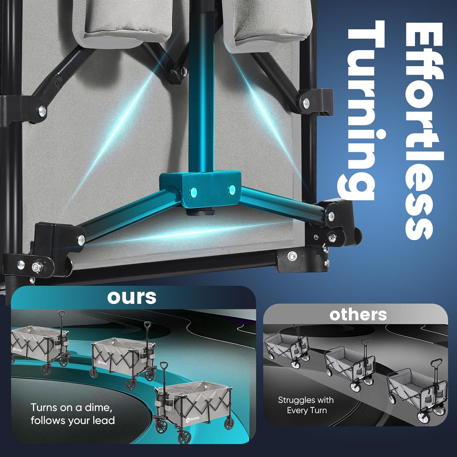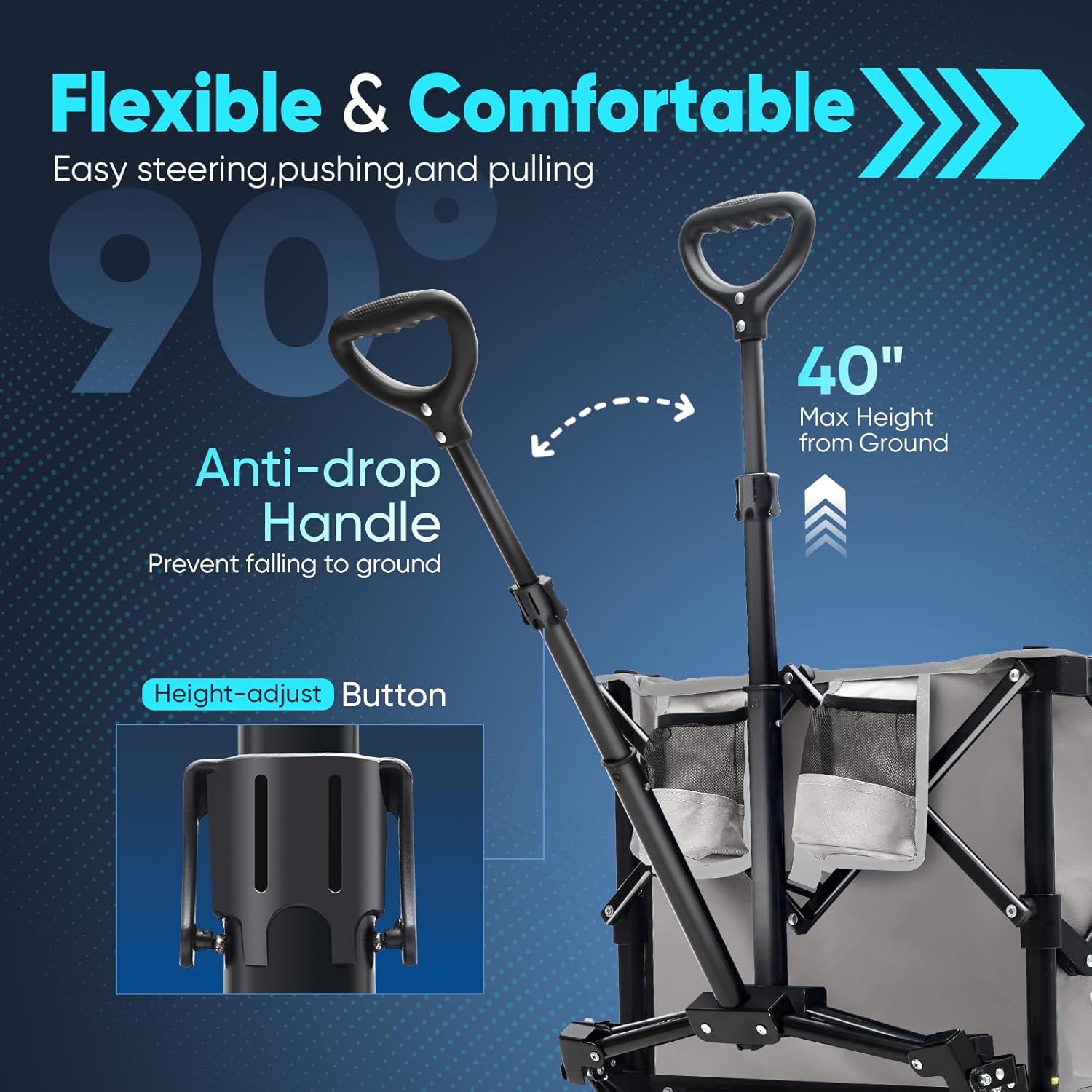 Sekey Collapsible Foldable Wagon with 330lbs Weight Capacity, Heavy Duty Folding Wagon Cart with Big All-Terrain Wheels & Drink Holders. Gray