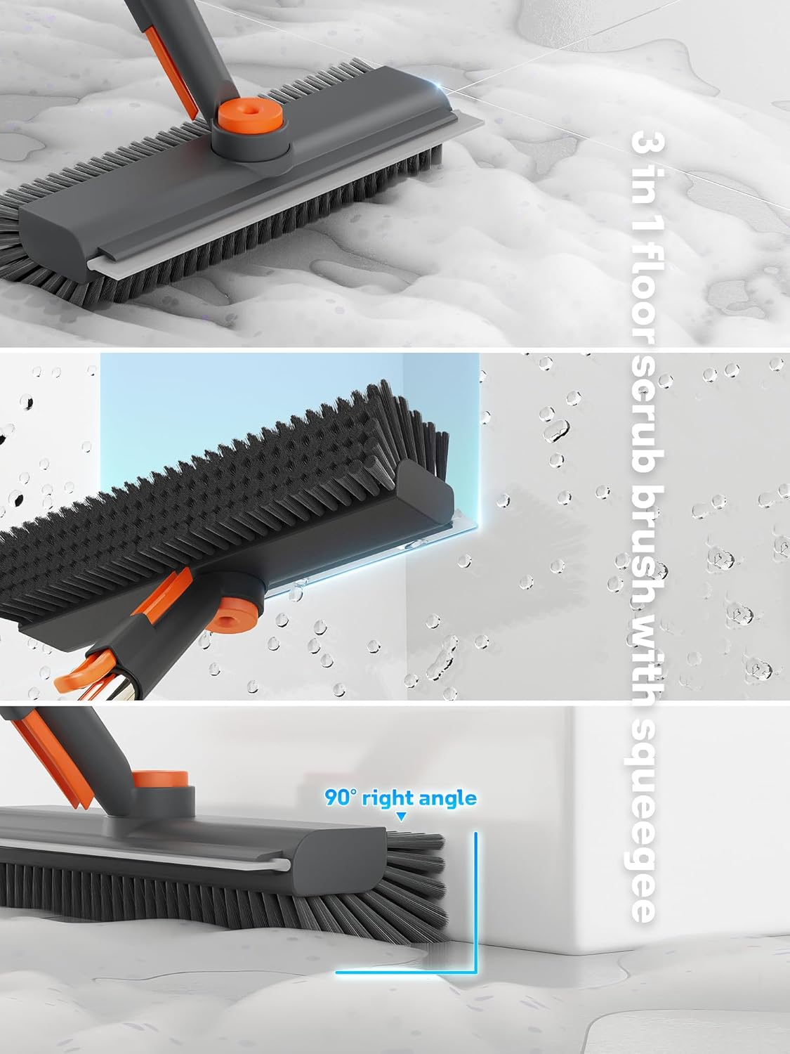 • 【Multi-Angle Adjustable Scrub Broom】: The brush head of our scrub brush with long handle can rotate(press the button) to multiple angles, giving you complete control over your cleaning. Whether you’re cleaning floors, walls, or corners, ensures you can tackle every spot comfortably and thoroughly
