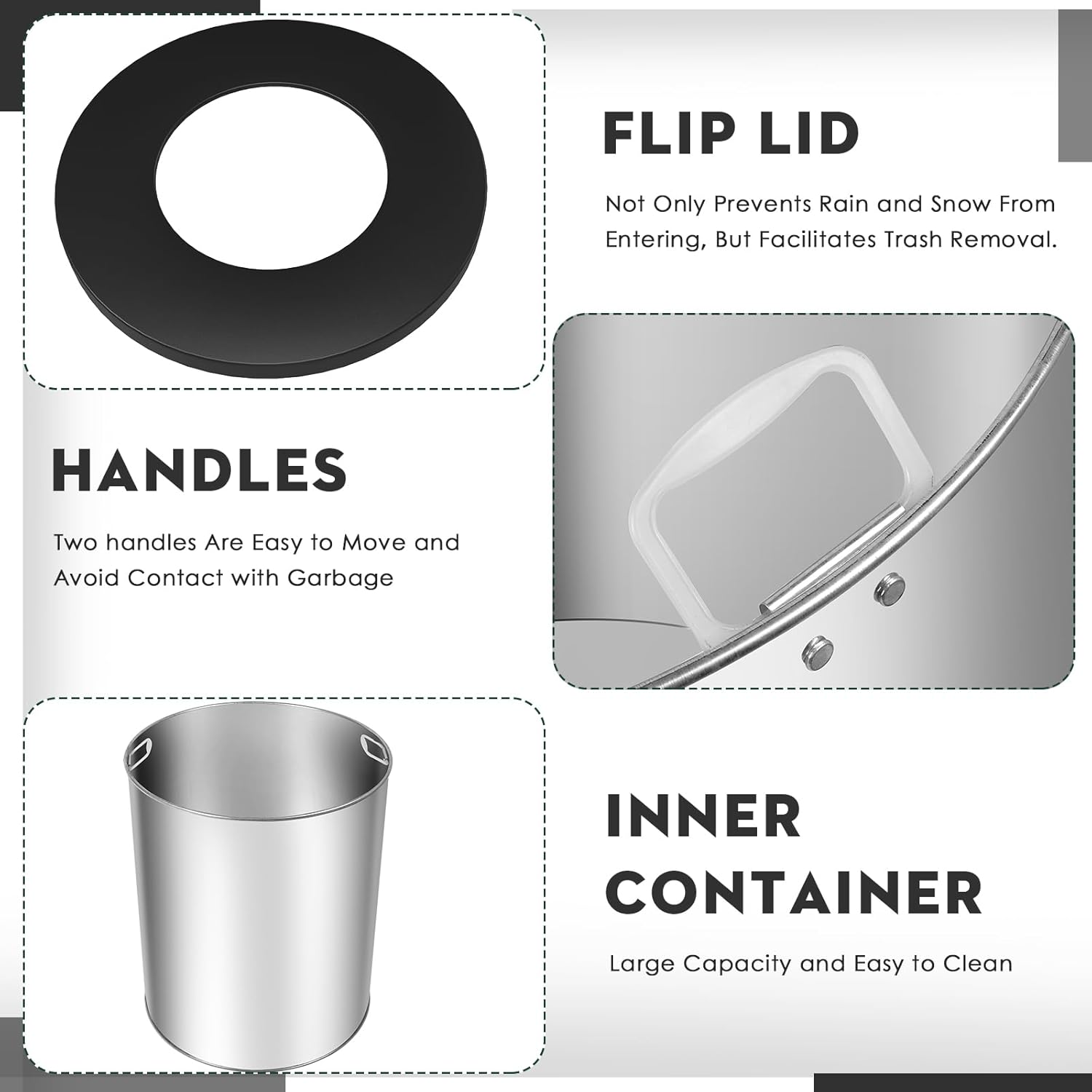 • 【Easy-to-Clean Metal Liner Feature】Our incorporated metal liner simplifies maintenance. When it's time to empty the trash, you can swiftly remove the liner, dump the waste, and wipe it clean with ease. This convenience is especially crucial in high-traffic areas like schools, hospitals, and shopping malls. It saves cleaning time and effort, allowing for efficient waste management.