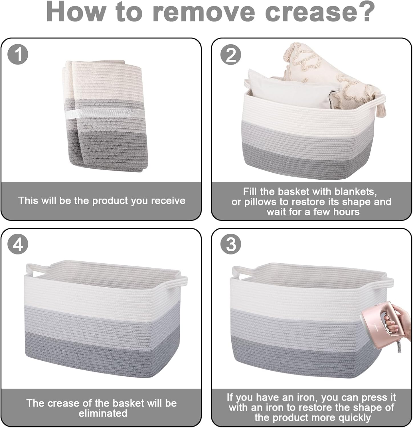 • NOTE: The toy basket is folded, but it will turn back to its elegant shape quickly if you fill it with some pillows or blankets, and iron is great idea to remove the creases