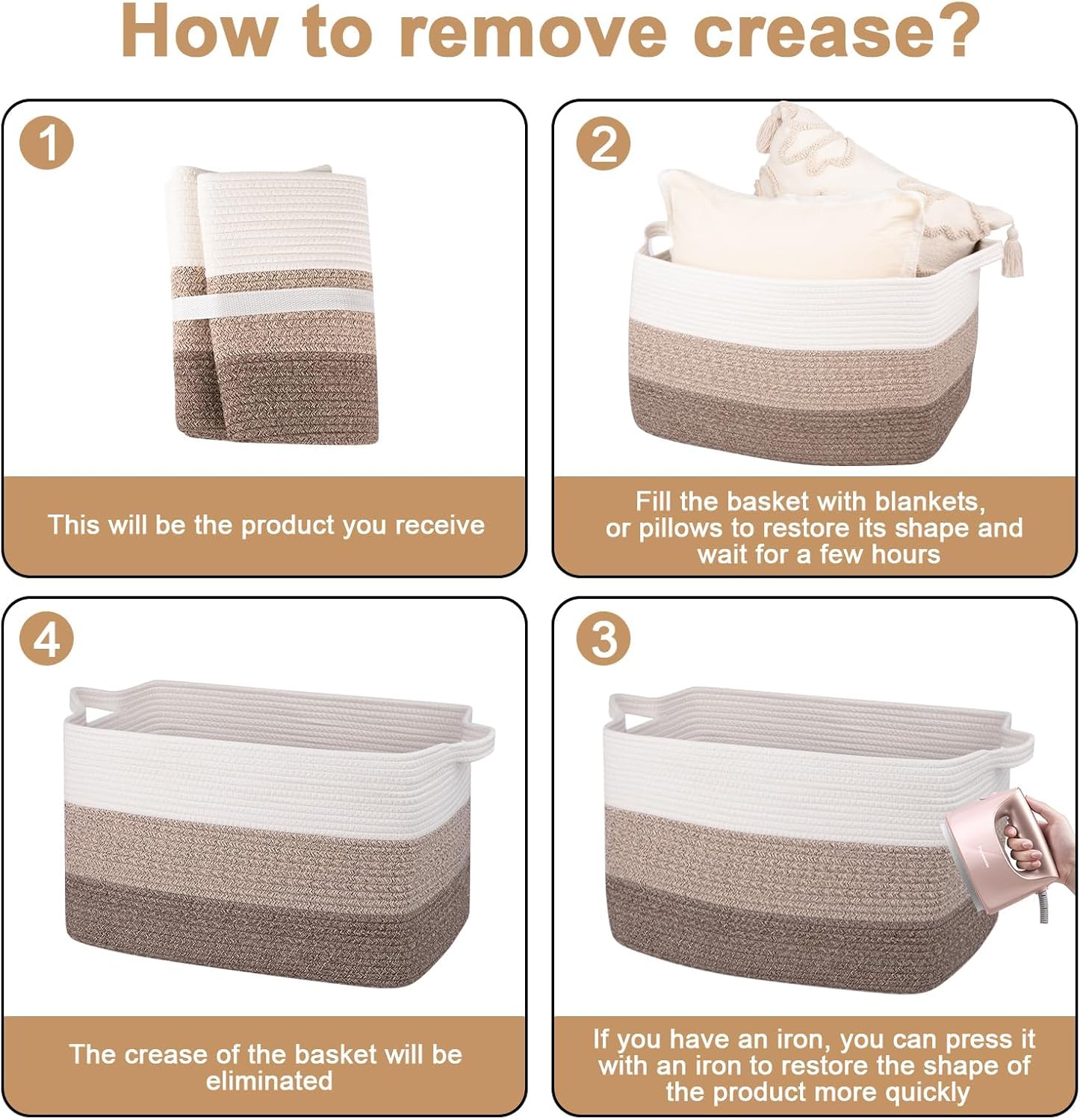 • NOTE: The toy basket is folded, but it will turn back to its elegant shape quickly if you fill it with some pillows or blankets, and iron is great idea to remove the creases