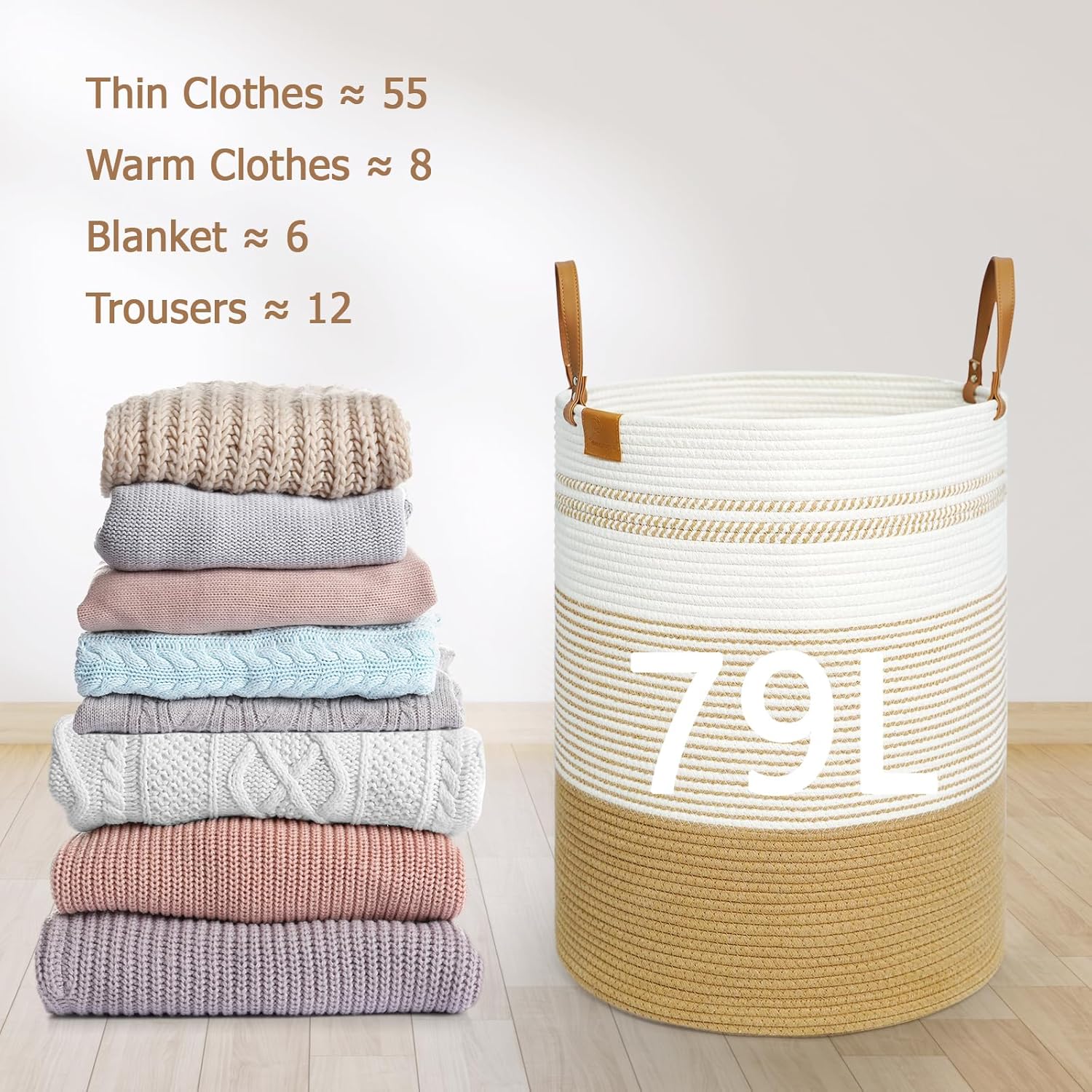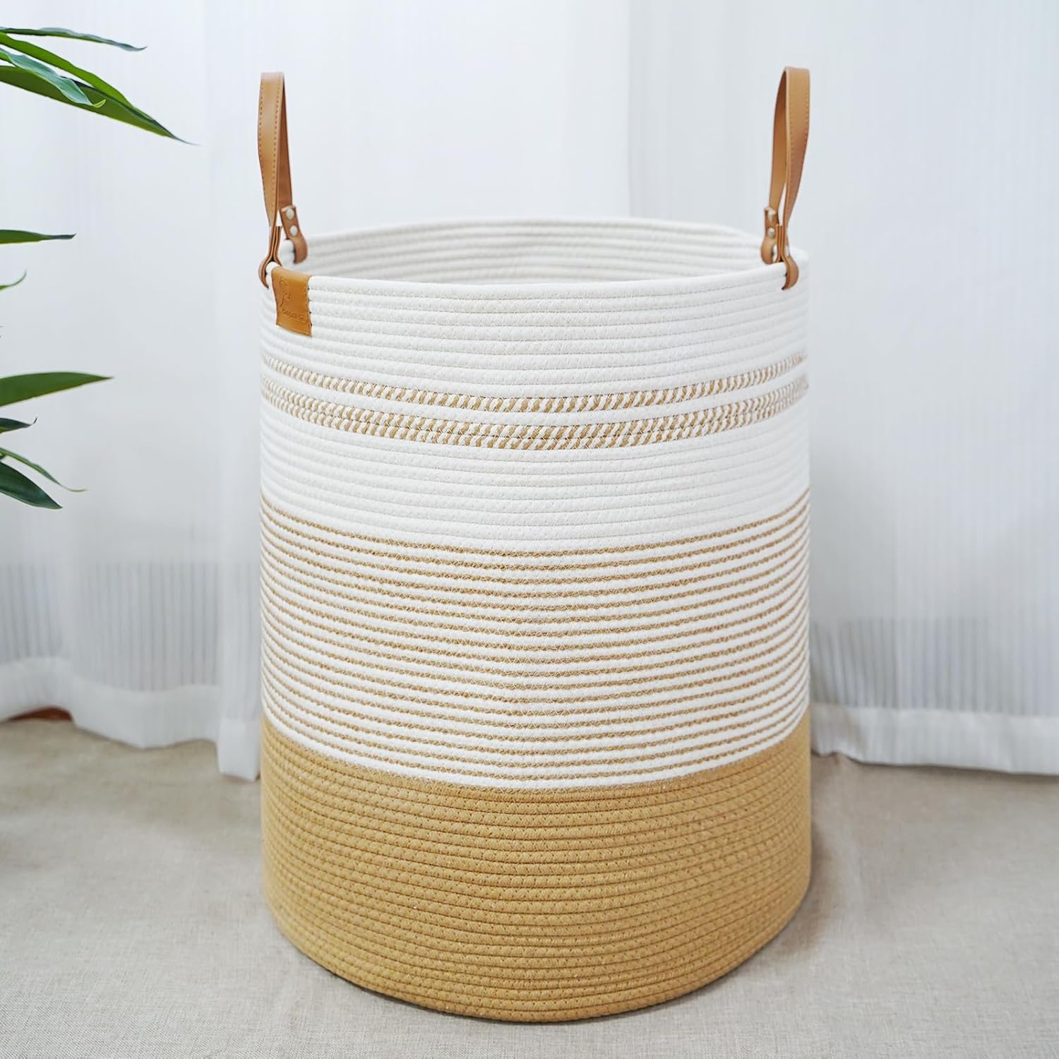 • Versatile Storage Solution: This tall woven cotton storage basket isn’t just for laundry! It’s the perfect blanket basket, toy organizer, or even a decorative piece in your living room. Whatever your needs, this large, multi-functional basket brings both style and practicality into your space