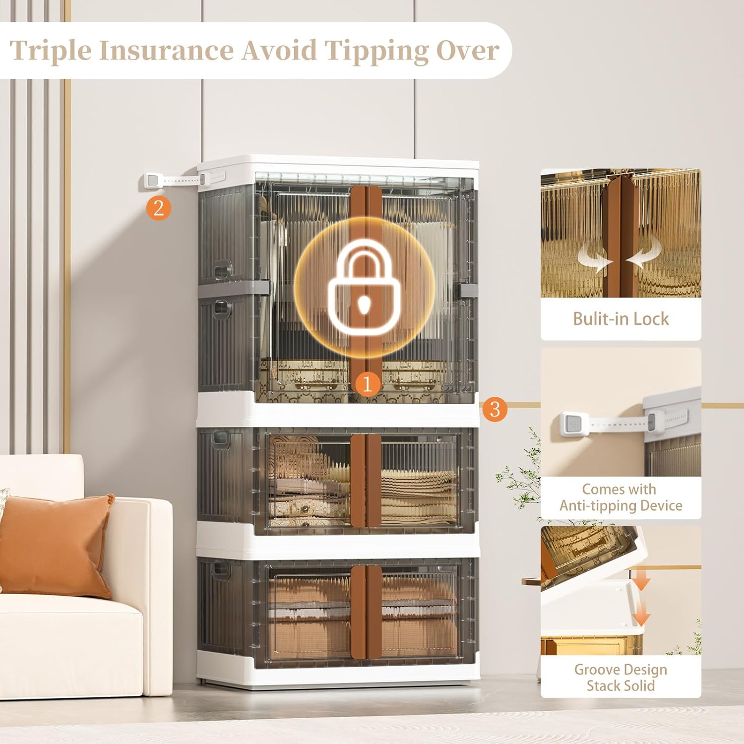 • 【Easy Assembly Closet Bins】This large-capacity wardrobe sets up in just 5 minutes, simply connect the lightweight panels, secure the buckles, and straighten the frame for instant clothes hanging or storage space. Featuring a dual-access design, you can effortlessly grab items from the top flip-lid or securely open the front door with built-in lock buckles to prevent accidental openings and dust intrusion, keeping belongings neatly protected.