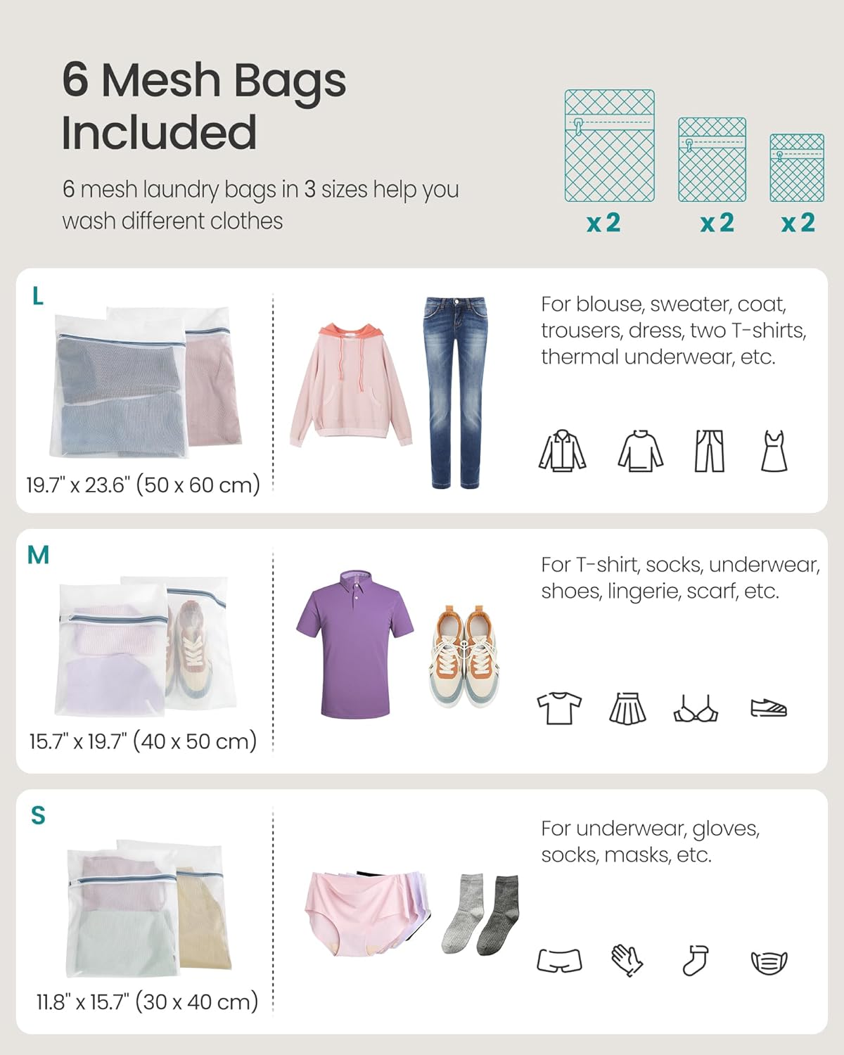 • [6 Mesh Laundry Bags Provided] This hamper comes with 6 laundry bags to help you protect your underwear, socks, or other delicates when you wash them in the washing machine