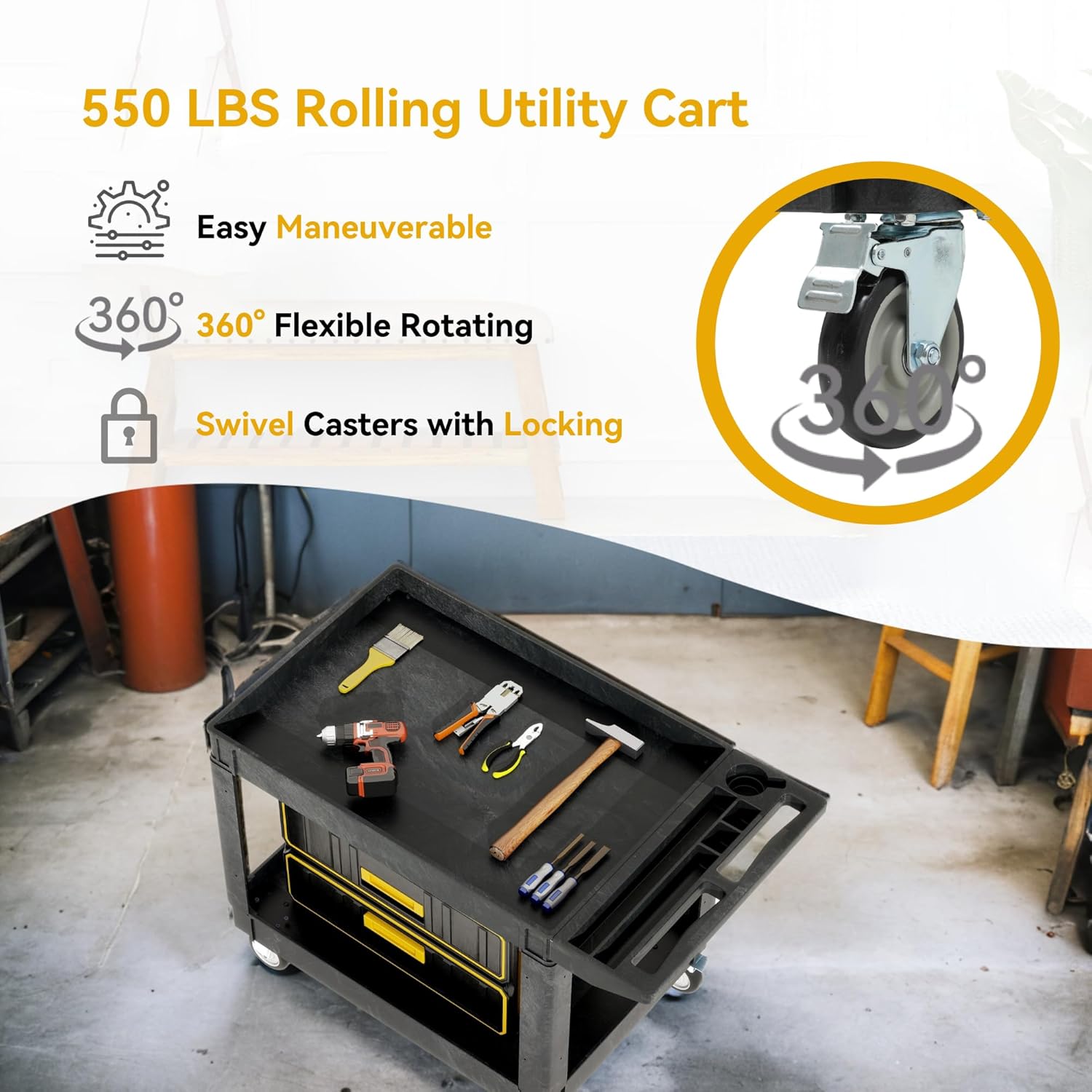 DWVO Utility Service Cart on Wheels, 45 X 25 in 550 LBS Heavy Duty Rolling Cart Plastic Work Cart for Warehouse Garage School & Office Cleaning