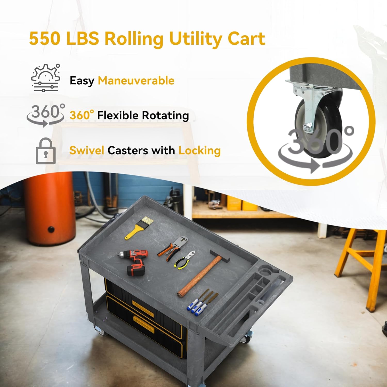 DWVO Service Utility Cart on Wheels, 45 X 25 in 550 LBS Heavy Duty Rolling Cart Plastic Work Cart for Warehouse Garage School & Office Cleaning
