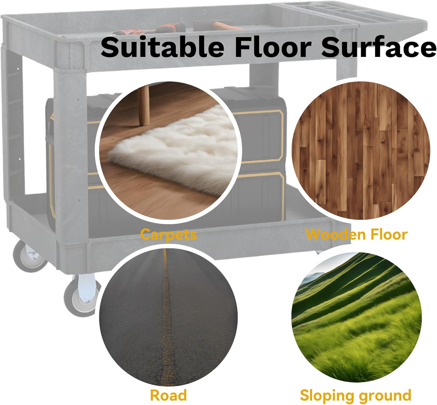 • ​​Versatile & Safety-Focused Design:​​ Ideal for offices, factories, garages, and outdoor use, the cart handles slopes and rough terrain effortlessly. Rounded corners prevent injuries or damage to walls and furniture, ensuring user safety during operation