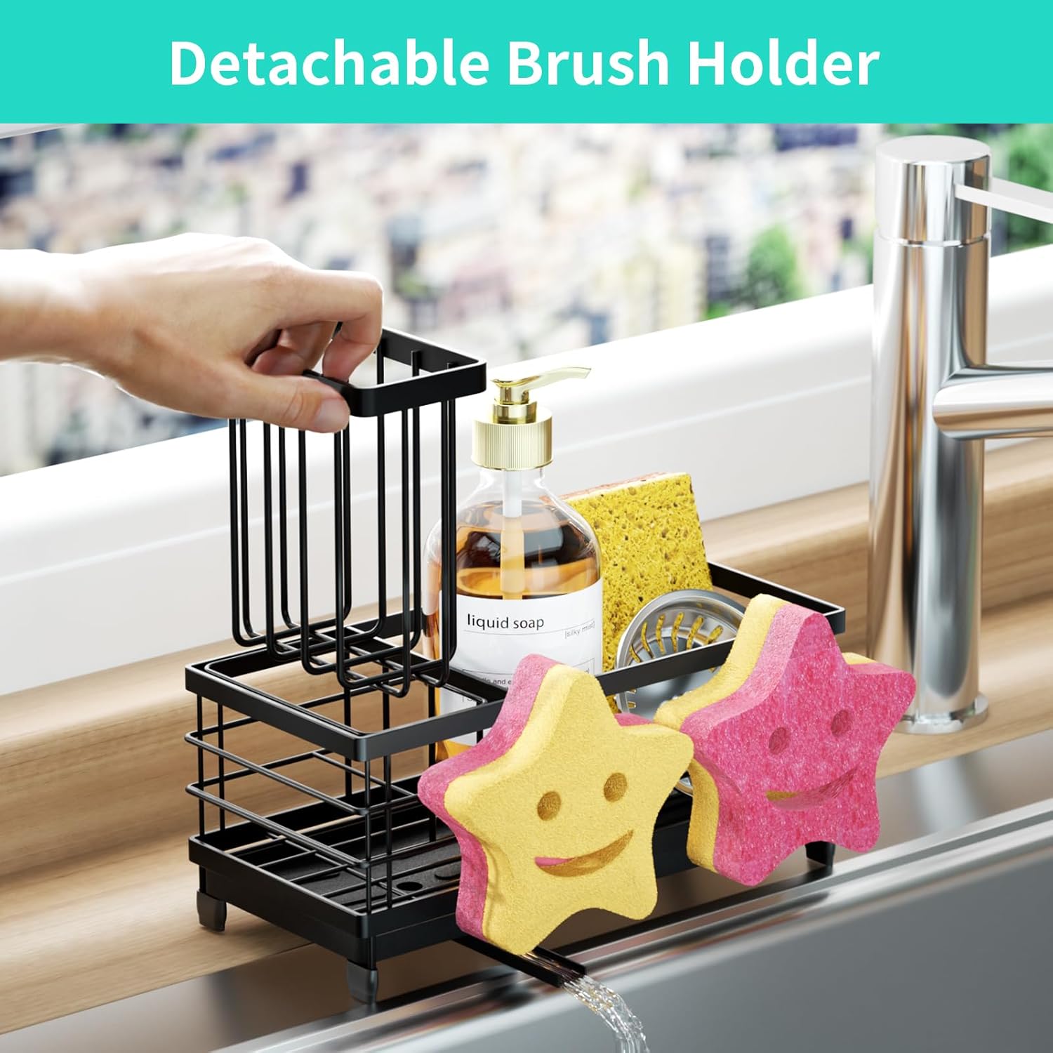 • [Detachable Brush Holder]: HapiRm kitchen sink caddy also comes with a removable brush holder, creating a dedicated spot for your dishwashing brushes. Whether you need extra space or prefer to use the holder separately, this feature offers flexibility and adaptability