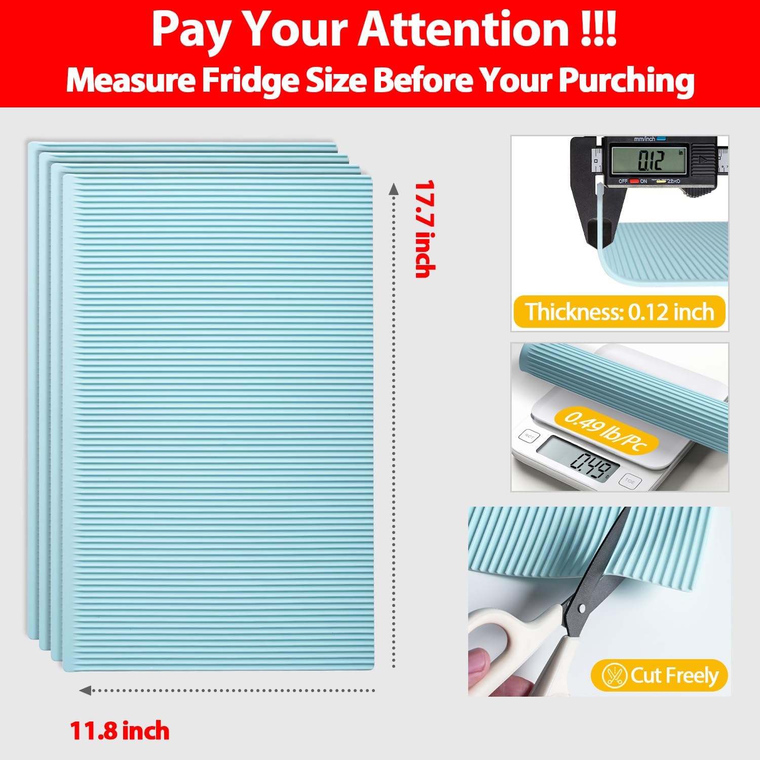 • Safety Material: Made of 100% food-grade silicone, BPA-free, non-toxic, no fading, highlights is that we have added the anti-slip Stripped texture to strengthen friction, to protect it against annoying spills, drips and food stuck on your fridge shelves, saving you the time and effort you spend cleaning your fridge.