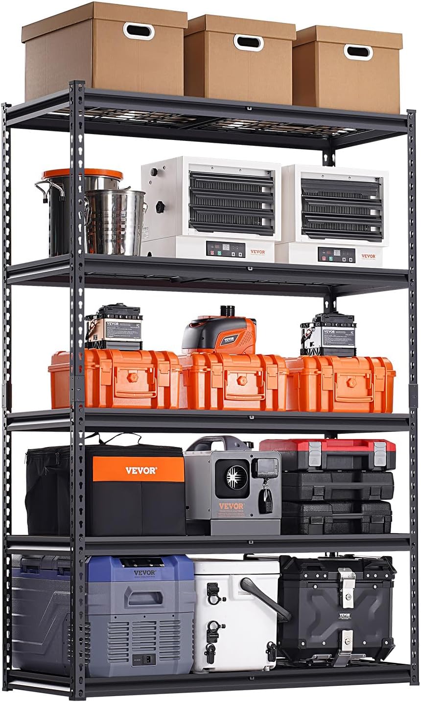 VEVOR Storage Shelves, 3000 lbs, 5 Tier Heavy Duty Garage Shelving, 20" D x 48" W x 72" H Adjustable Metal Shelves for Industrial Shelving Unit Utility Shelf, for Kitchen, Warehouse, Basement, Black