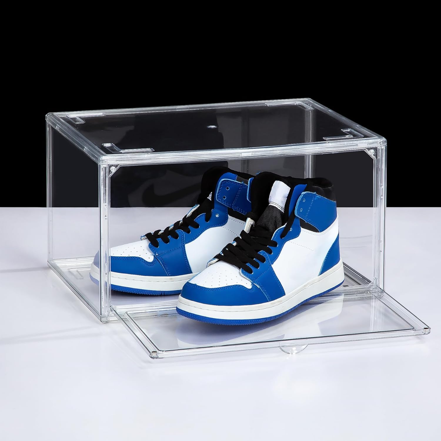 • Clear Acrylic Shoe Boxes: This Shoe Storage Box made from transparent acrylic allows a full view of your collection. Dustproof and waterproof, the shoe storage organizer features a side-opening magnetic door, making it easy to access and store your shoe boxes while keeping them protected.