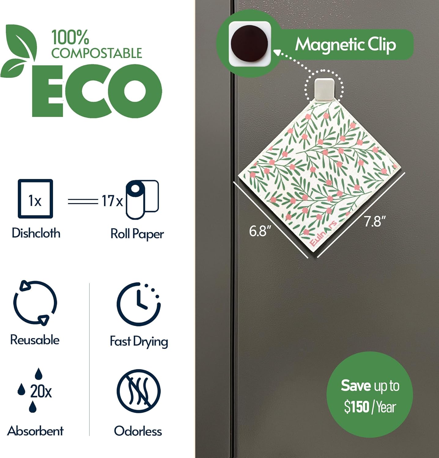 • Easy to Clean and Store: Our swedish dishcloths, measuring 7.8 x 6.8 inches, each set comes with 8 cellulose dish cloths in 4 styles, along with 2 self-adhesive clips, 1 magnetic clip, and 9 labeling tags. Customize storage for easy access, hanging them on walls, counters, or refrigerators to keep your kitchen organized