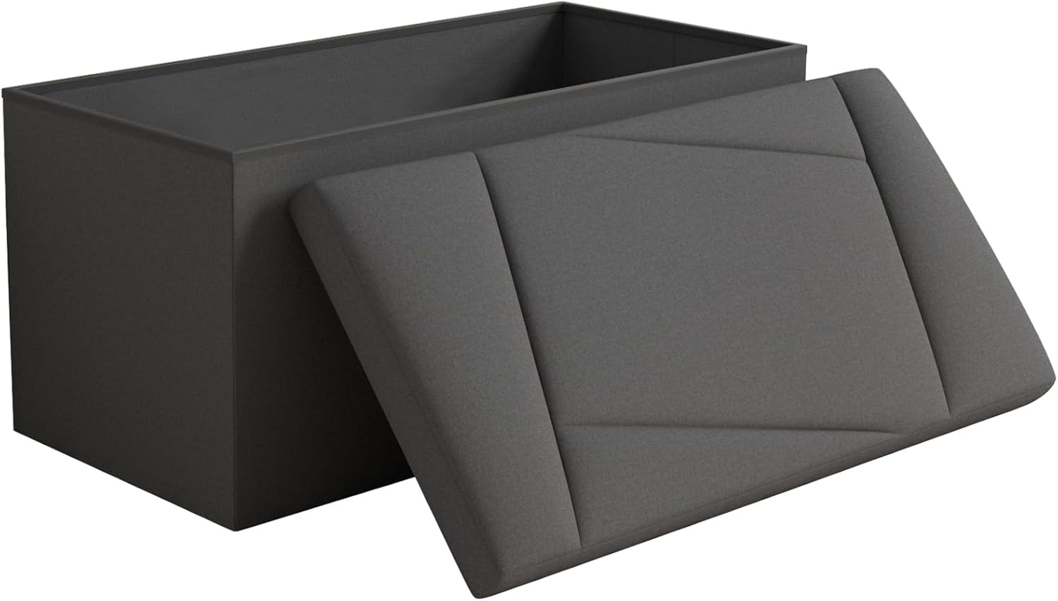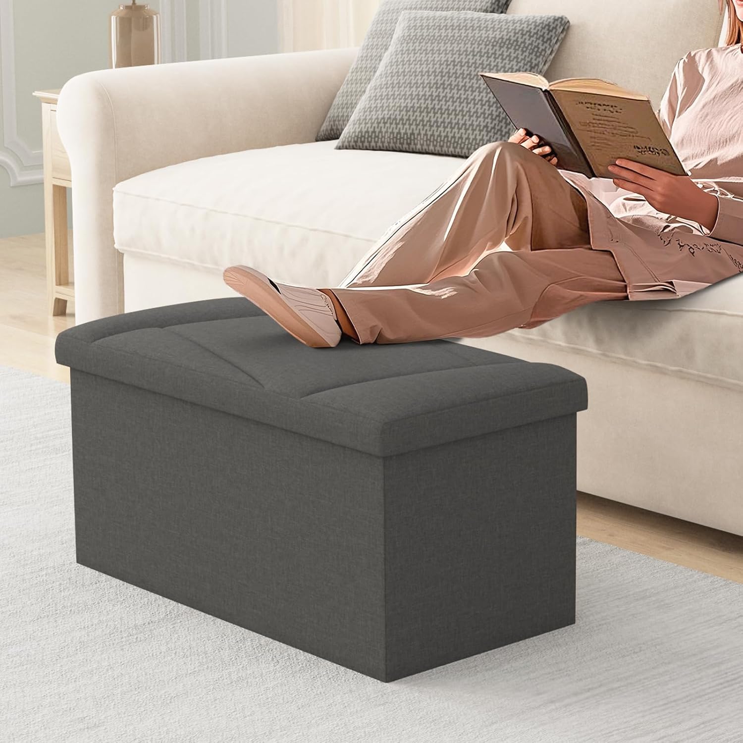 Folding Storage Ottoman Bench, 30 Inches End of Bed Bench Folding Ottoman Storage for Bedroom, Entryway and Living Room, 30"x15"x15",Dark Gray