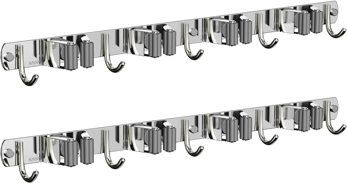 • STURDY AND FUNCTIONAL:The mop and broom holder wall mount is made of premium quality stainless steel, corrosion-resistant, rustproof and waterproof,wear-resistant, long-lasting and easy to clean
