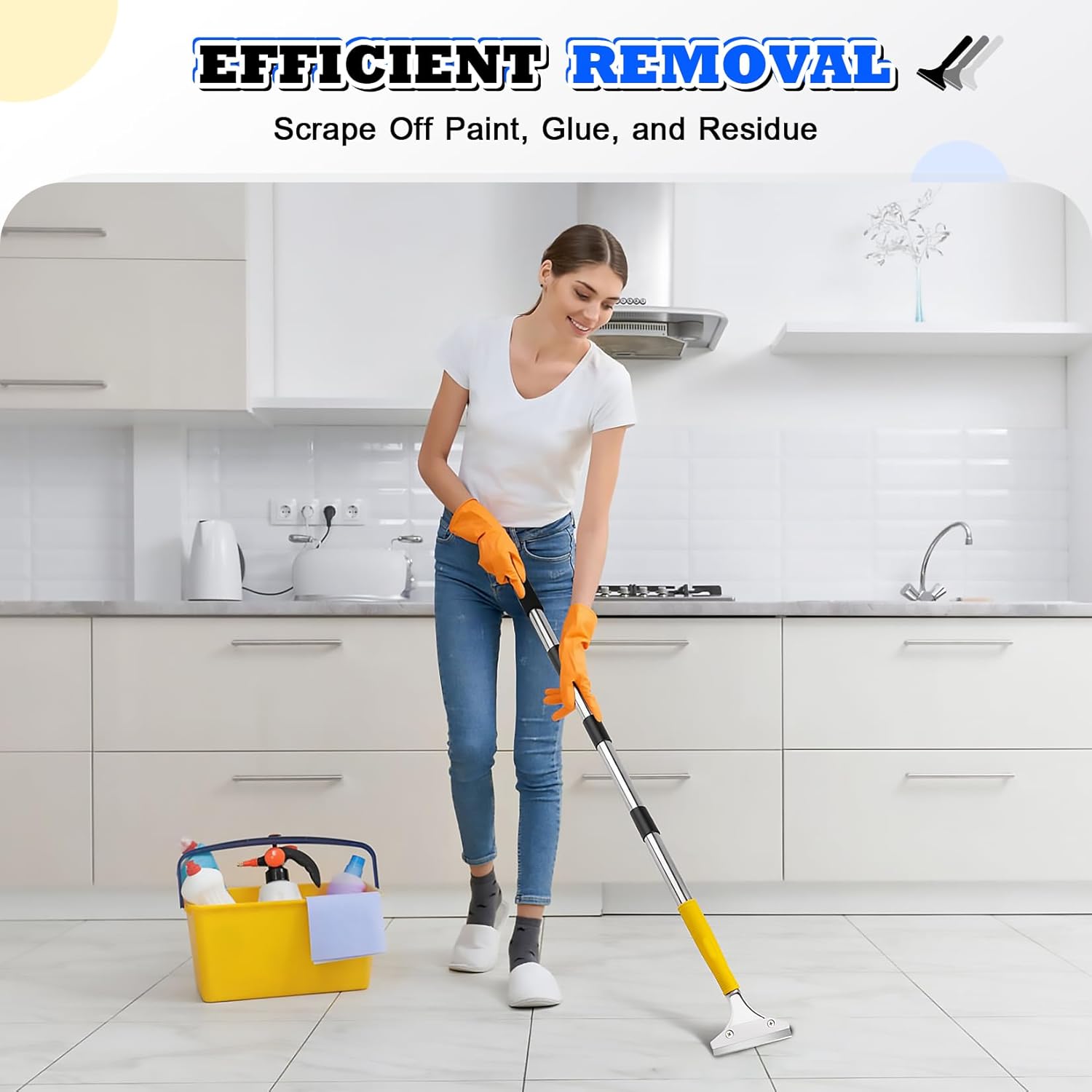 • Comfortable Grip for Extended Use: Designed to feel light and easy to handle, this scraper remains comfortable even during prolonged tasks. The final rod section is wrapped in foam for better grip and control, reducing hand fatigue. Assembly is quick and tool-free, and gloves provide added protection when handling sharp blades or scraping rough materials. A smart, beginner-friendly tool that works safely and efficiently.