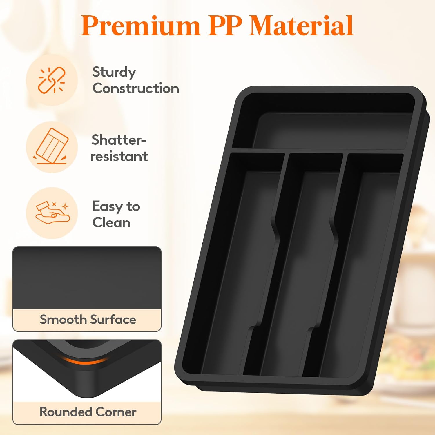 • Robust and Safe: This kitchen drawer organizer is crafted from premium PP material, BPA-free and built to last. It ensures your silverware is stored in a healthy, safe environment for worry-free use