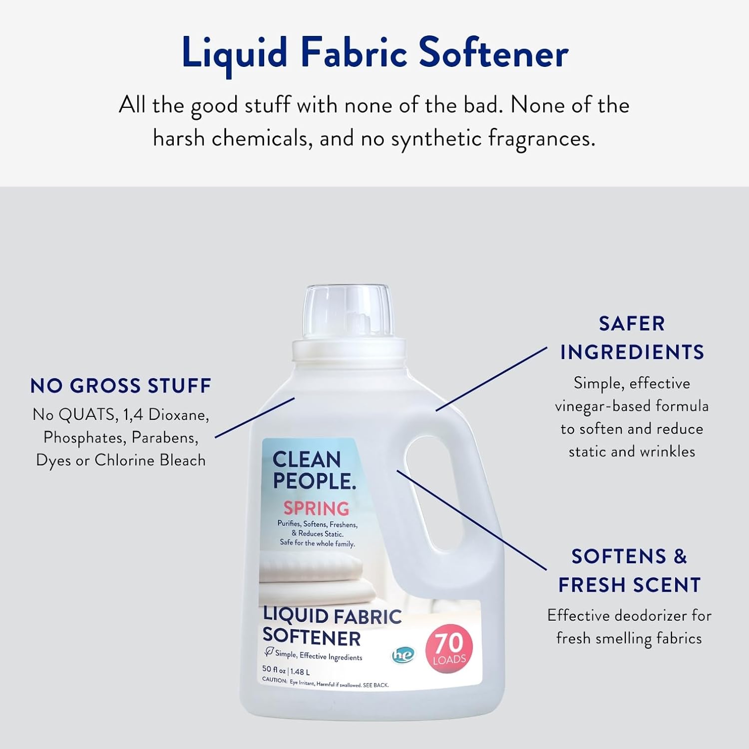 The Clean People Liquid Fabric Softener - Softens & Removes Static Cling - Vegan (100 Fl Oz, Spring)