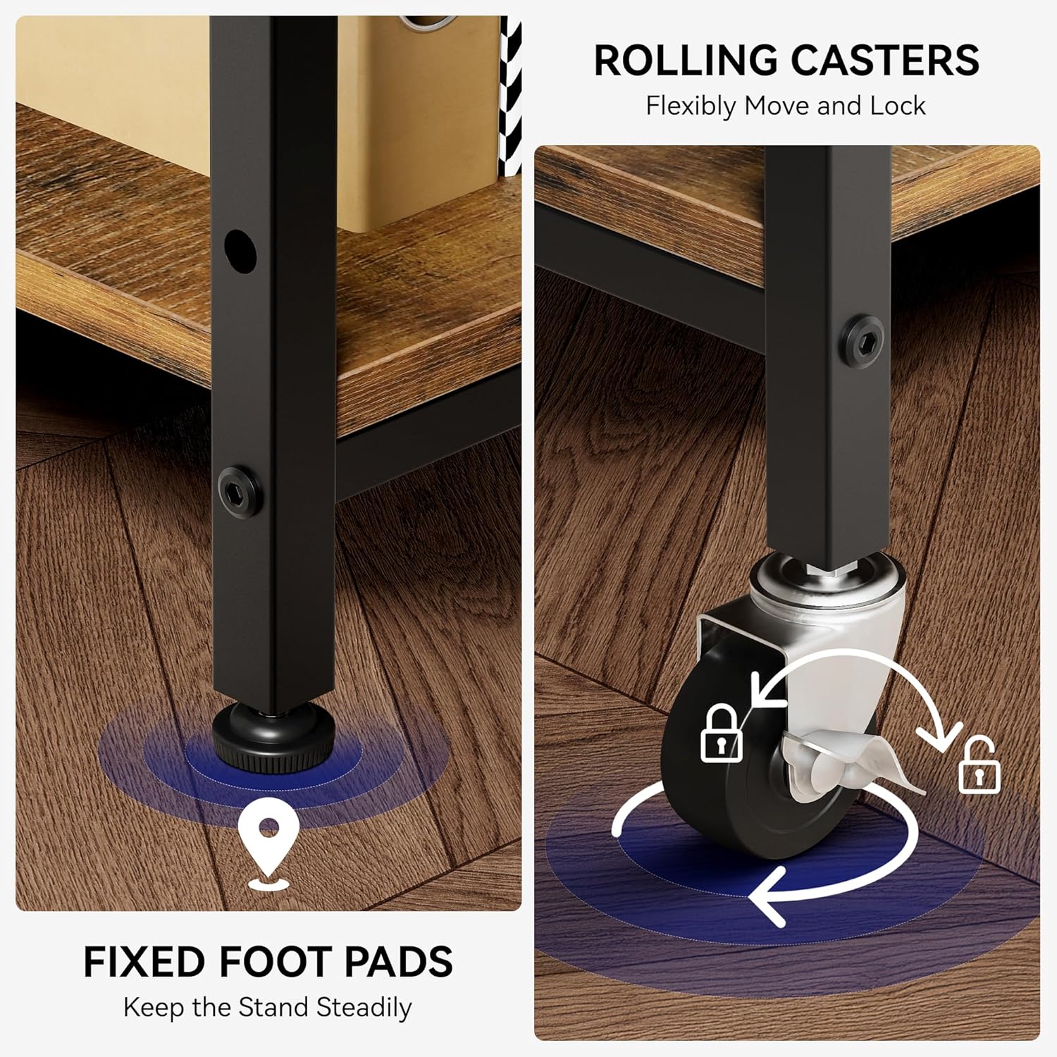 • 【Adjustable Feet and Rolling Casters Both Included】 Come with fixed foot pads and rolling casters, you can choose between full stability or mobility. 2 of the 4 wheels are lockable to keep the printer cart in position. The foot pads can be fine-tuned to prevent wobbling on uneven surfaces, guaranteeing a stable and secure stand.