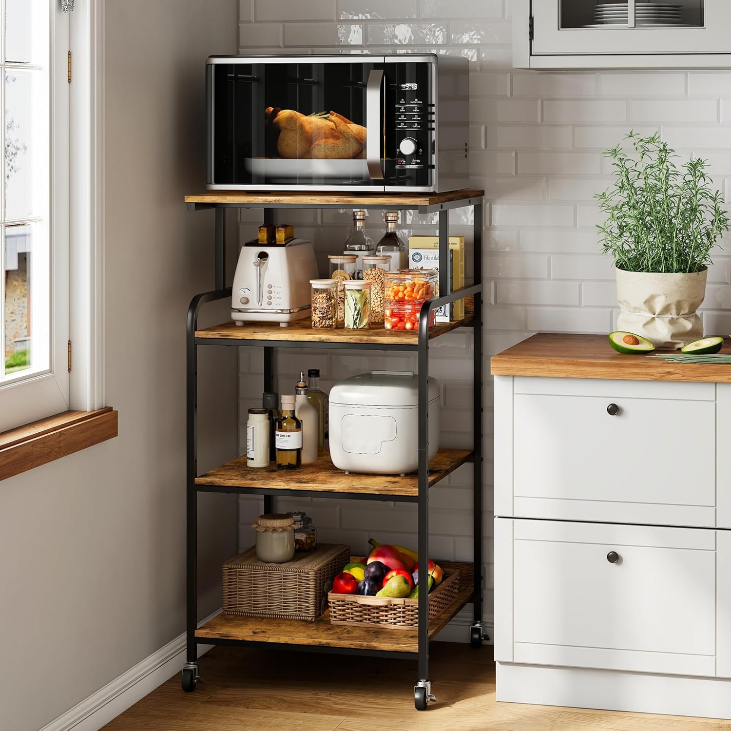 Warmiehomy 4 Tier 24" x 24" Printer Stand with Adjustable Storage Shelf - Large Tall Printer Table with Wheels - Rolling Cart for 3D Laser Printer - Home Office Small Spaces Organization (Brown)