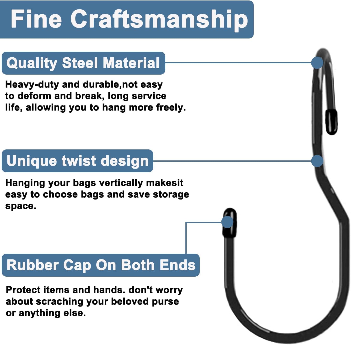• 【Improved Design S Hook】These purse hooks feature a unique twisted design, optimizing space while providing a secure hold for your items. The S-hook design allows for easy organization and accessibility.