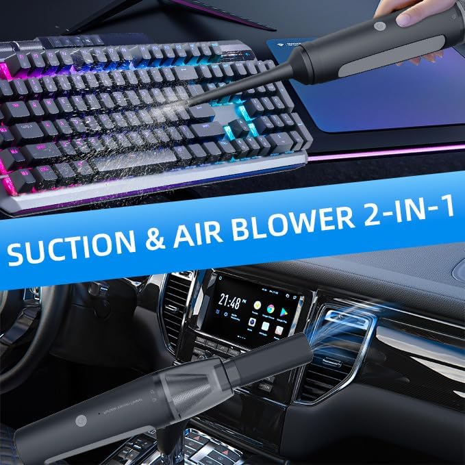 PATO Handheld Vacuum, 13000PA Portable Cordless Car Vacuum Cleaner, Suction and Blow 2-in-1 Dust Removal Vacuum Cleaner for Car, Home, Office, Pet. Black