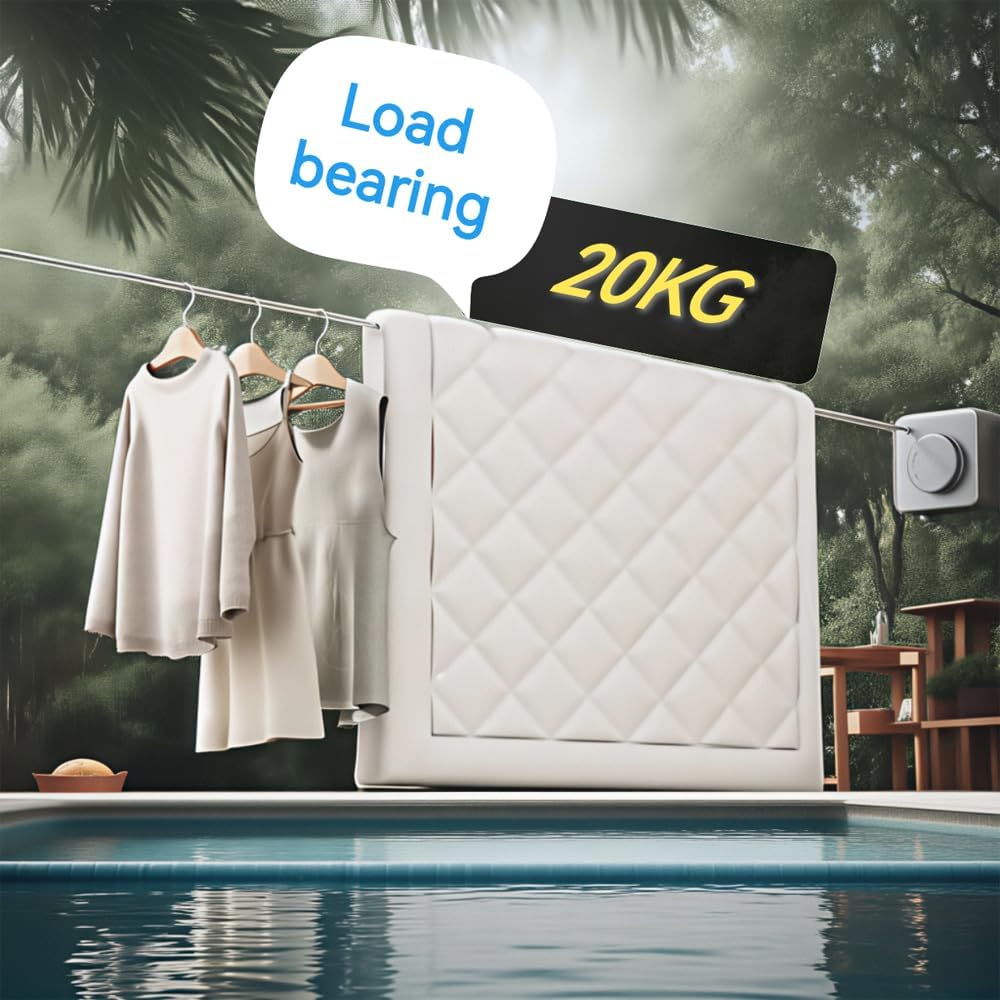 • LOAD CAPACITY: Heavy-duty retractable clothesline supports up to 44 pounds (20kg) of wet or dry clothes with sturdy stainless steel cable