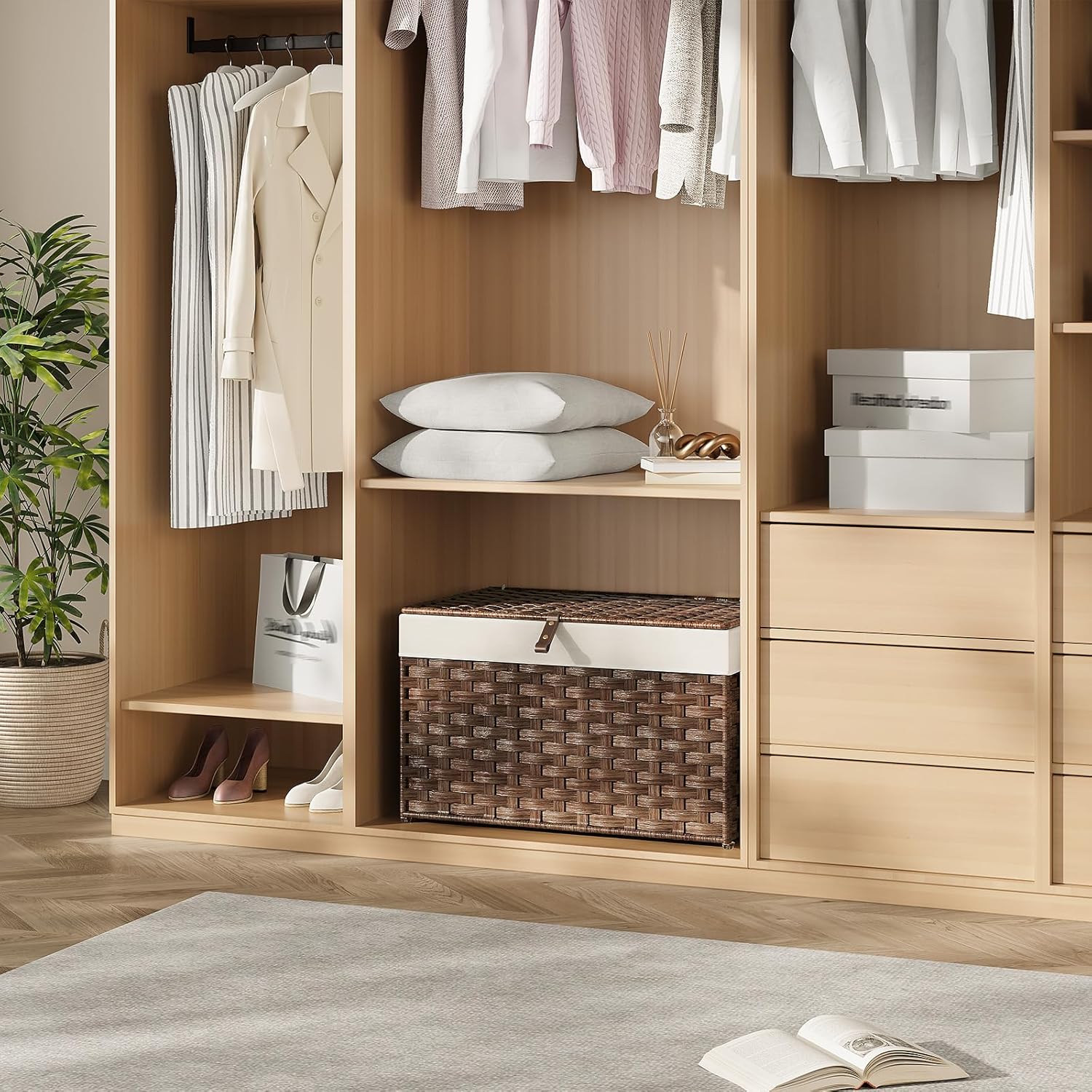 • Ultra-Spacious Storage: This 65L storage basket is a clutter-buster for bedrooms, etc. Its full-open lid lets you swiftly grab or stash clothes and blankets. No more messy chaos; it turns your space into a neat, organized haven