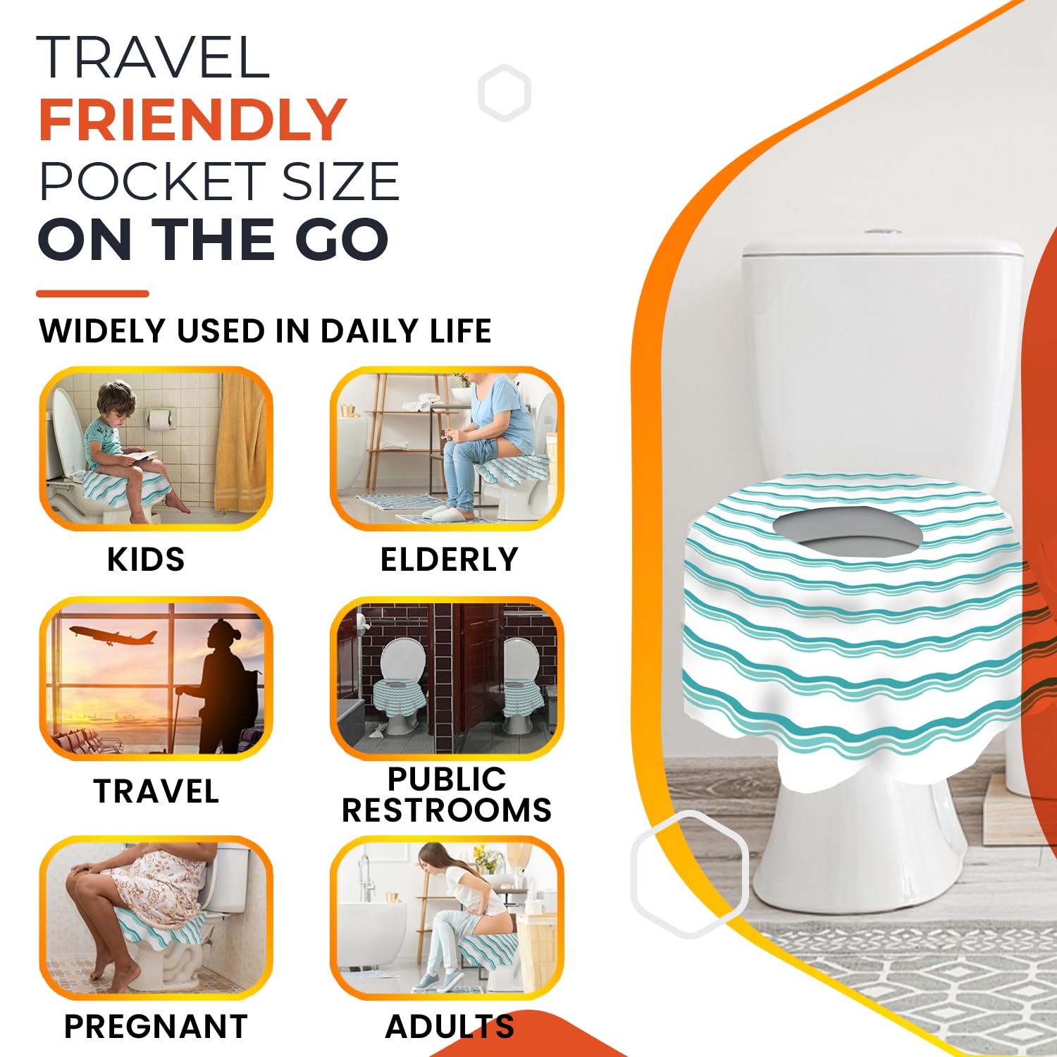 • EXTRA-LARGE TOILET COVERS DISPOSABLE: Disposable potty liners for toddlers and kids are the ultimate hygiene necessity for public restrooms! Our full coverage travel toilet seat for toddlers are critical for total protection