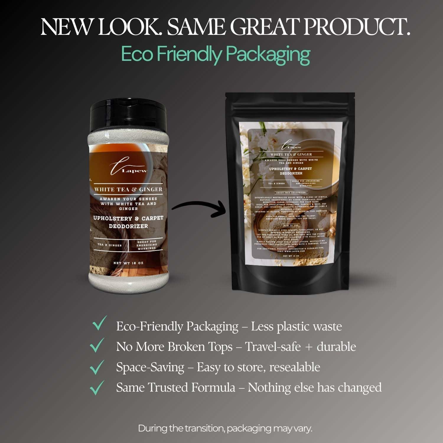 White Tea & Ginger Carpet Freshener Powder: Powerful Odor Eliminator for Home, Upholstery Deodorizer, Carpet Deodorizer, Pet Urine, Cat Litter Box - White Tea & Ginger Fragrance.