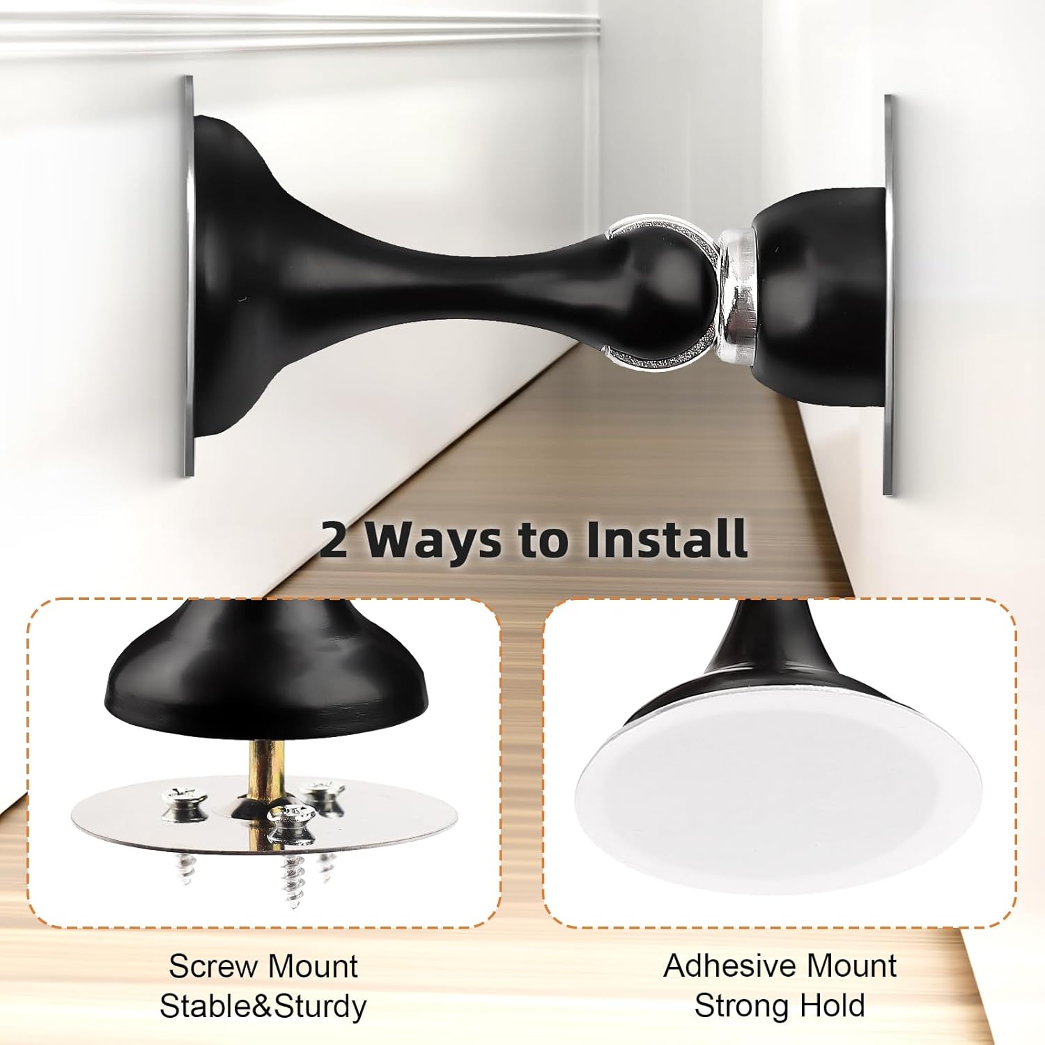 Probrico Black Magnetic Door Stoppers for Bottom of Door, Stainless Steel Magnet Door Catch Door Stops to Keep Door Open, Heavy Duty Door Holder, Wall and Floor Mounting, 2 Pack