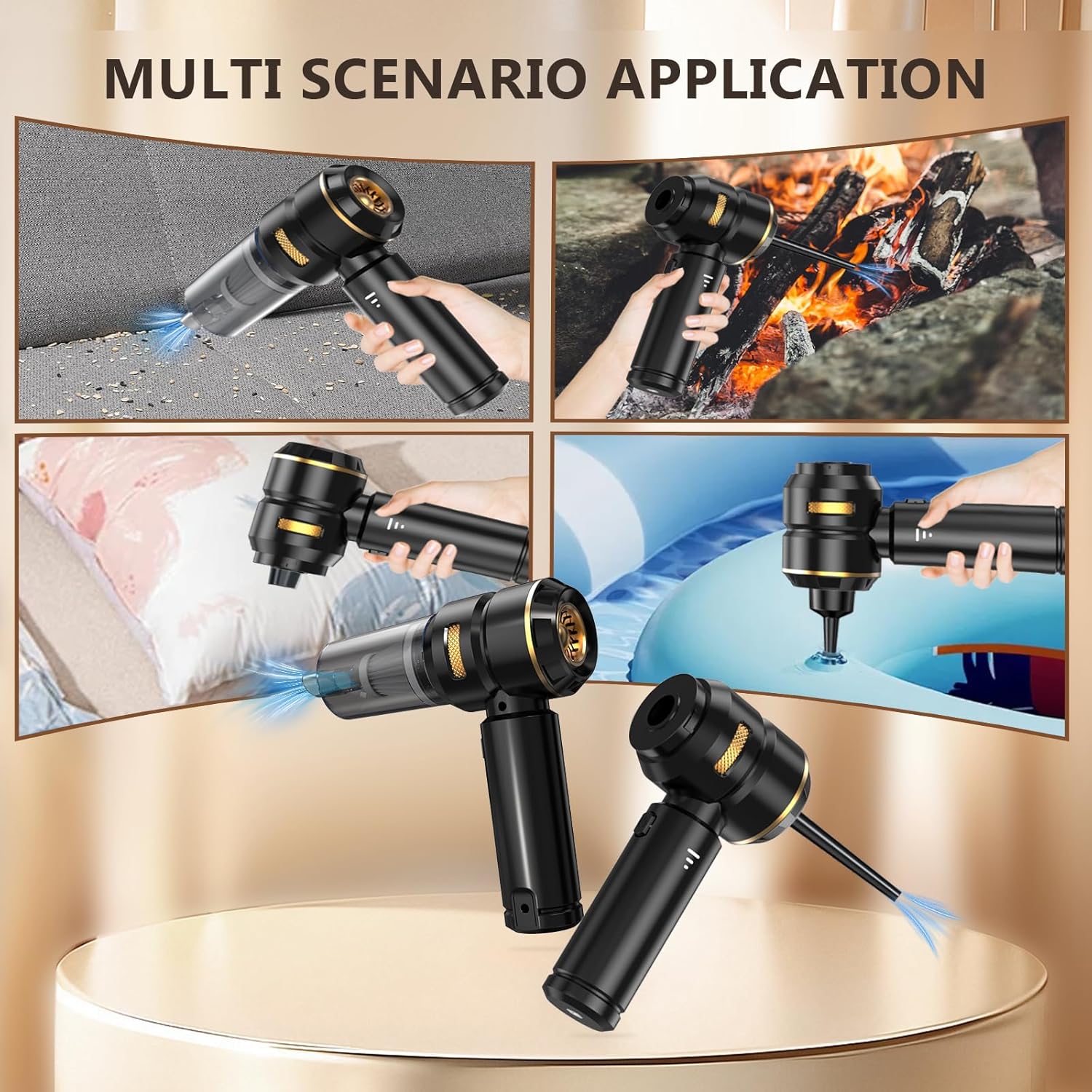 • 4-in-1 handheld vacuum: suction dust, blow debris, air extraction, and inflation. Ideal for thorough car interior cleaning, home, office, and camping. Easily handles pet hair and tight spots. A must-have for quick cleanups and inflation on the go