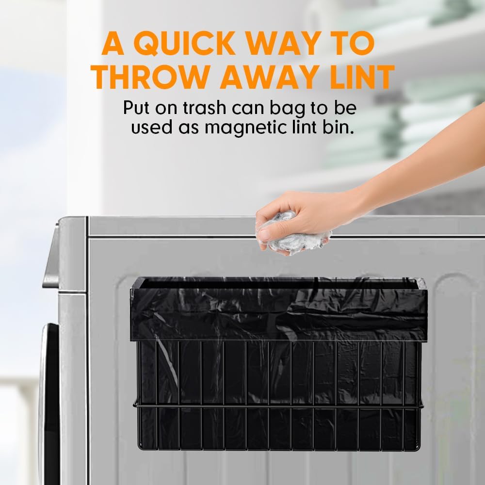 • Magnetic lint bin for laundry room: The dryer ball holder is included trash can bag to put on the holder to be used as a magnetic lint bin for laundry room, which can store lint, lost socks or other small items as a laundry room essentials to make your laundry room neater and less cluttered. The capacity has multiple loads of lint without having to worry about it overflowing. This is a quick way to throw away lint when you hold the magnetic magnetic lint bin onto the washer