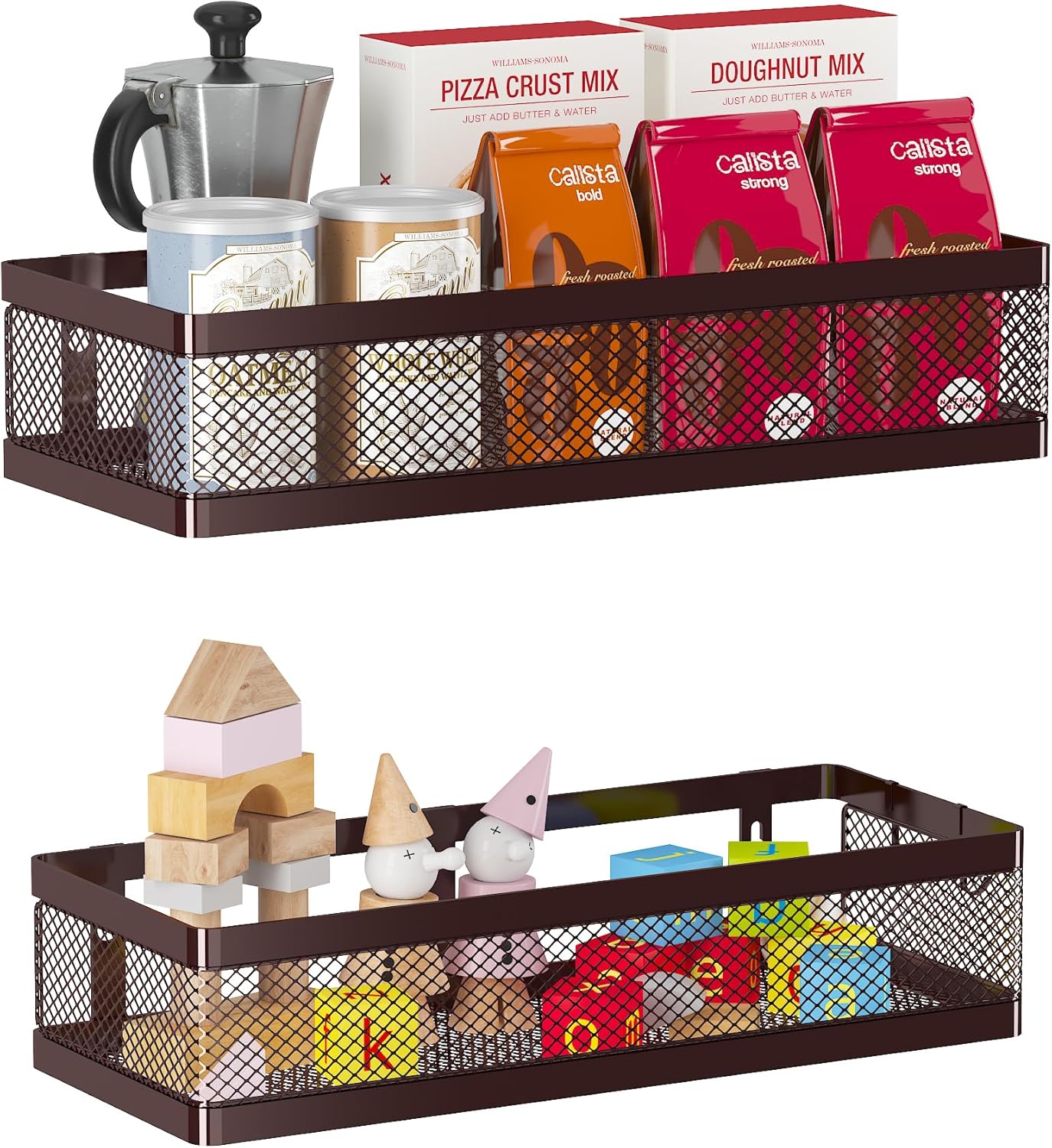 • 【MULTI-PURPOSE&MULTIFUNCTIONAL】The perfect solution for organizing a multitude of every items indoor or outdoor. The cabinet organizer hanging baskets wall mount is Ideal for organizing and storing spice bottles, pantry items, snacks, toiletries, tools, craft supplies,etc. And this metal bin basket free up enough space for your homes, kitchen, living room, bathroom, camper, farmhouse, apartments, college dorm rooms, etc.