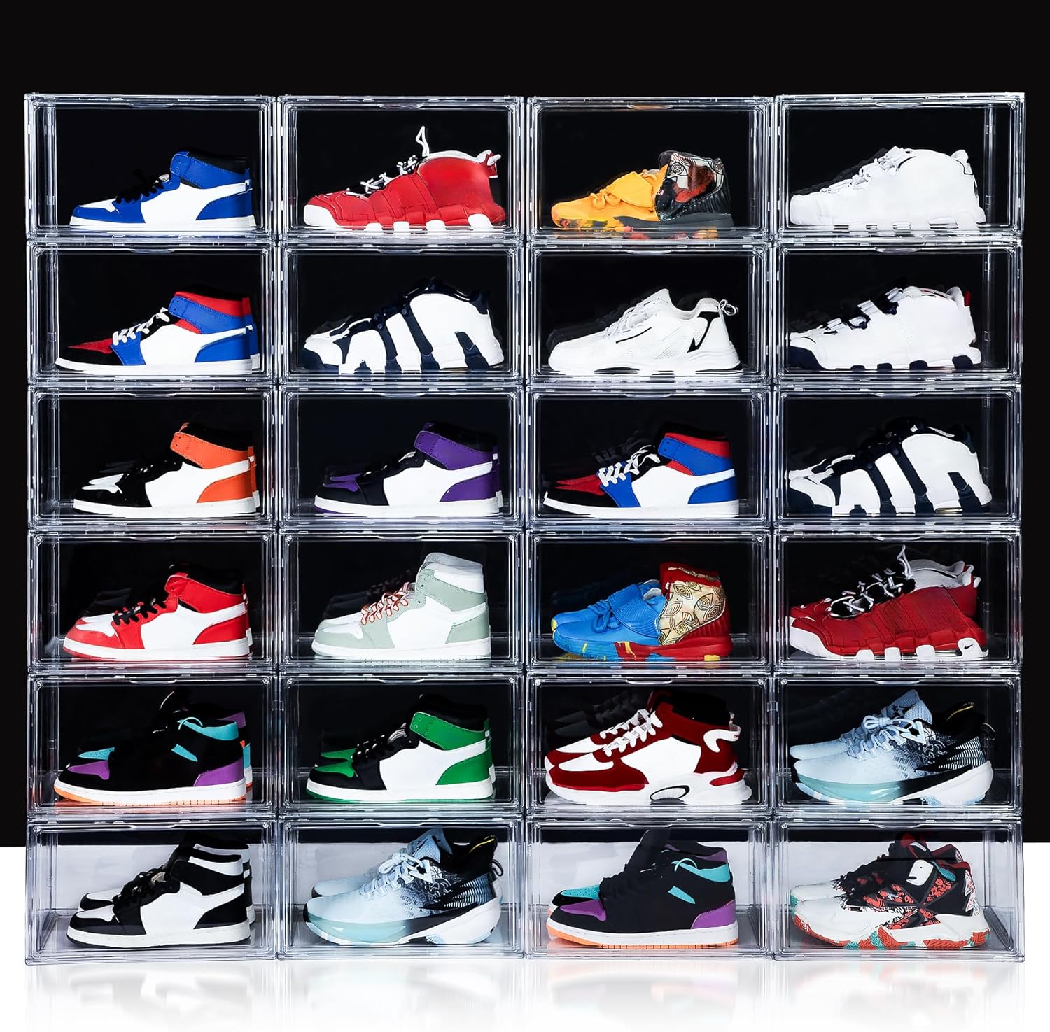 • Heavy-Duty Sneaker Storage: This shoe organizer for closet is made from high-hardness PET and can support up to 120kg. Stack the acrylic shoe boxes confidently, as they won’t deform or damage your footwear like softer boxes do.