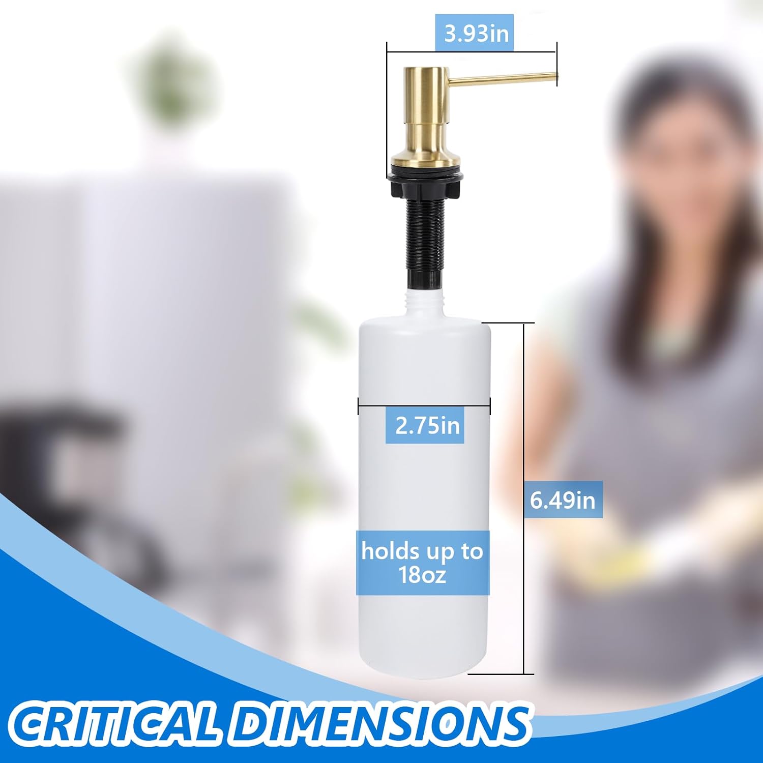 Soap Dispenser for Kitchen Sink Built in Sink Soap Dispenser, Countertop Soap Dispenser with 500ML/18OZ Bottle Refill from Sink Soap Dispenser(Gold)
