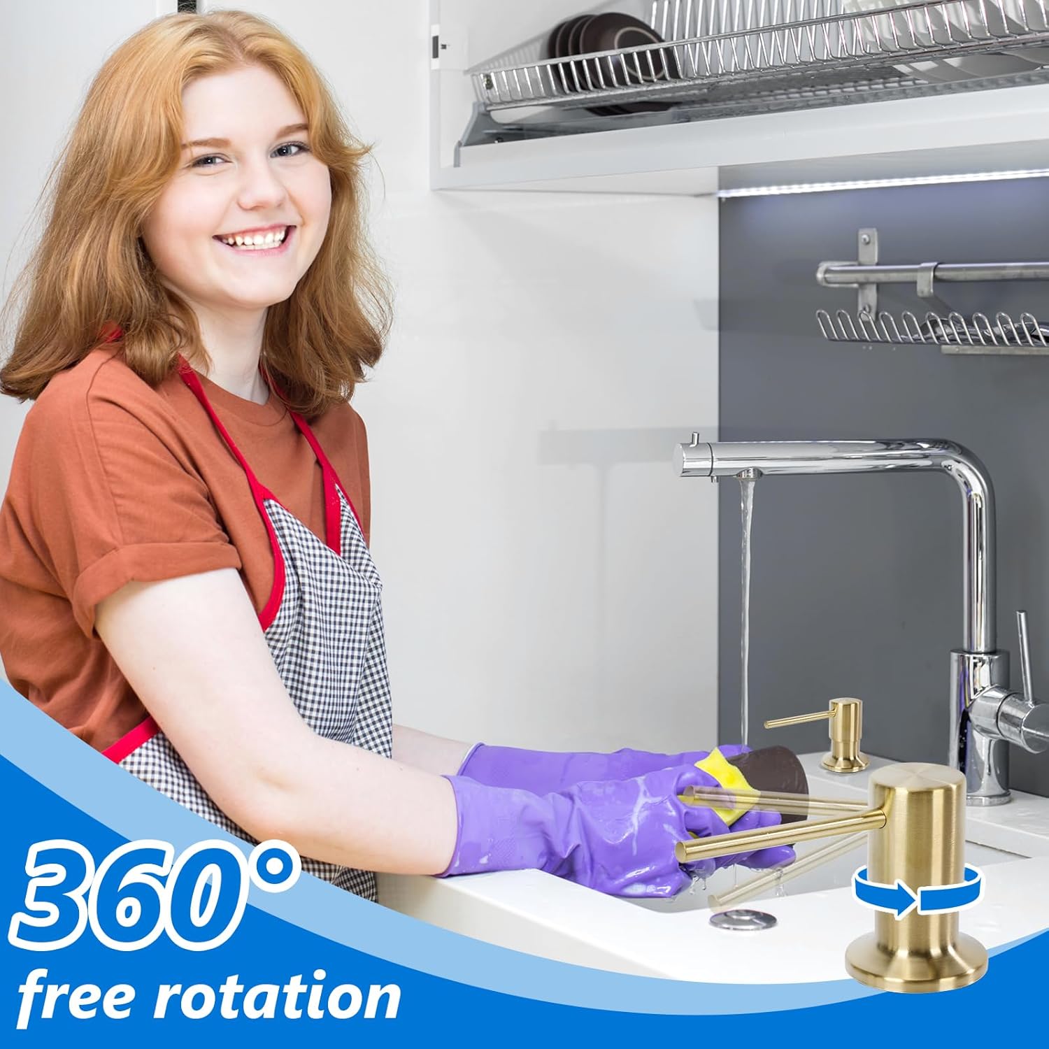 • CONVENIENT AND PRACTICAL: Refilling soap from the top is a breeze with this kitchen sink built-in soap dispenser. The sink soap dispenser is designed to avoid soap splatters for a more even, smooth liquid with no leaks, drips or clogs.