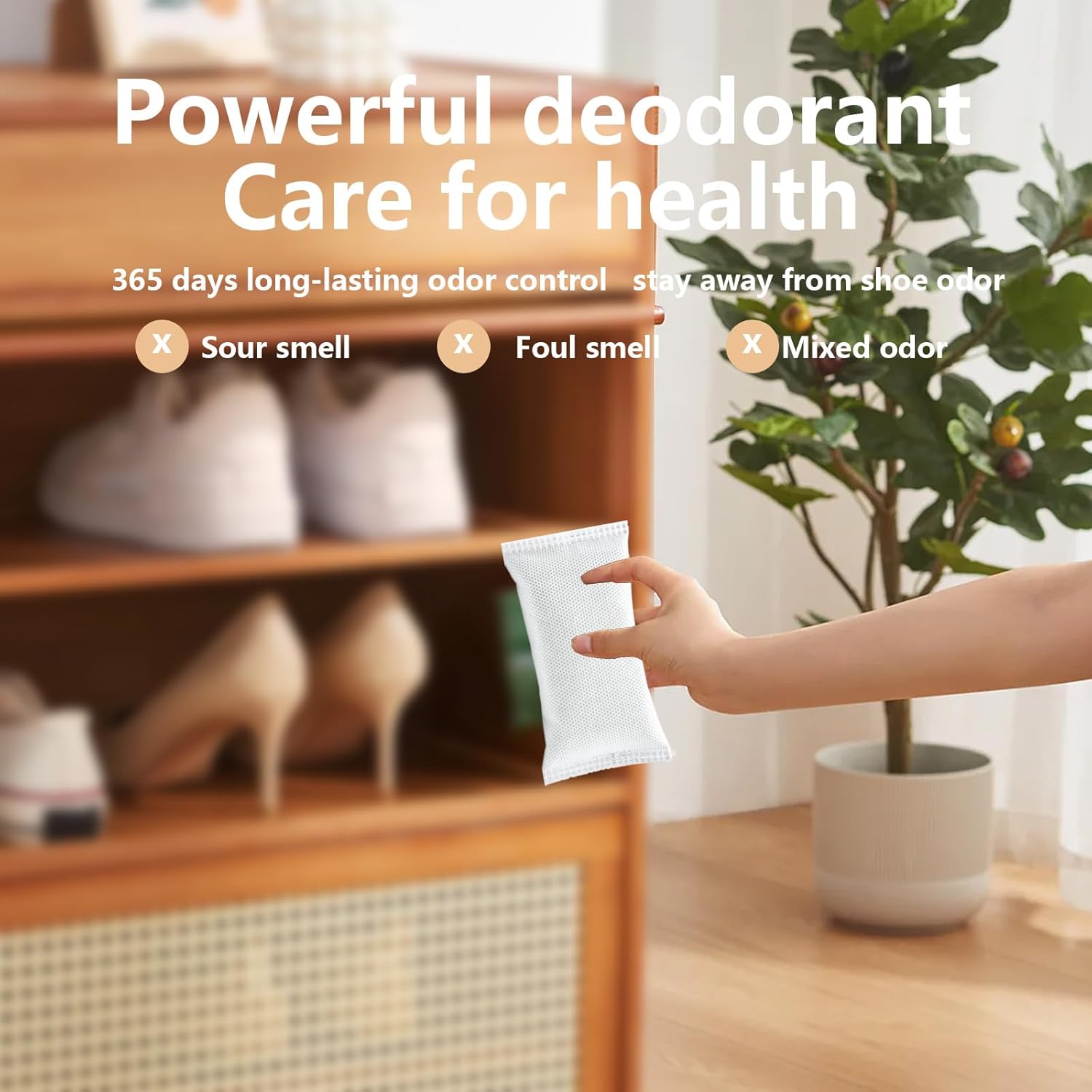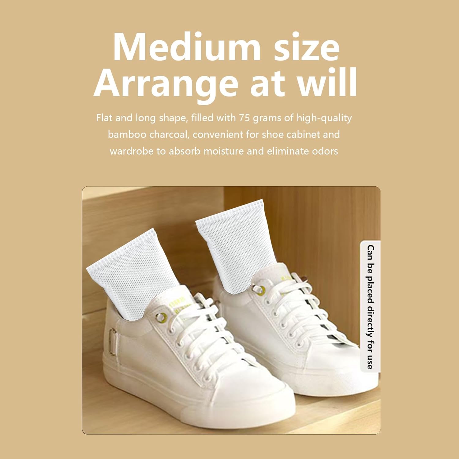 • Natural Bamboo Charcoal Bags:The shoe deodorizer bags is made of natural bamboo charcoal,safe for children and pets. You can use it in shoe cabinets, closets, cars, refrigerators, diaper pails, pets, shoes, and anywhere else you need it